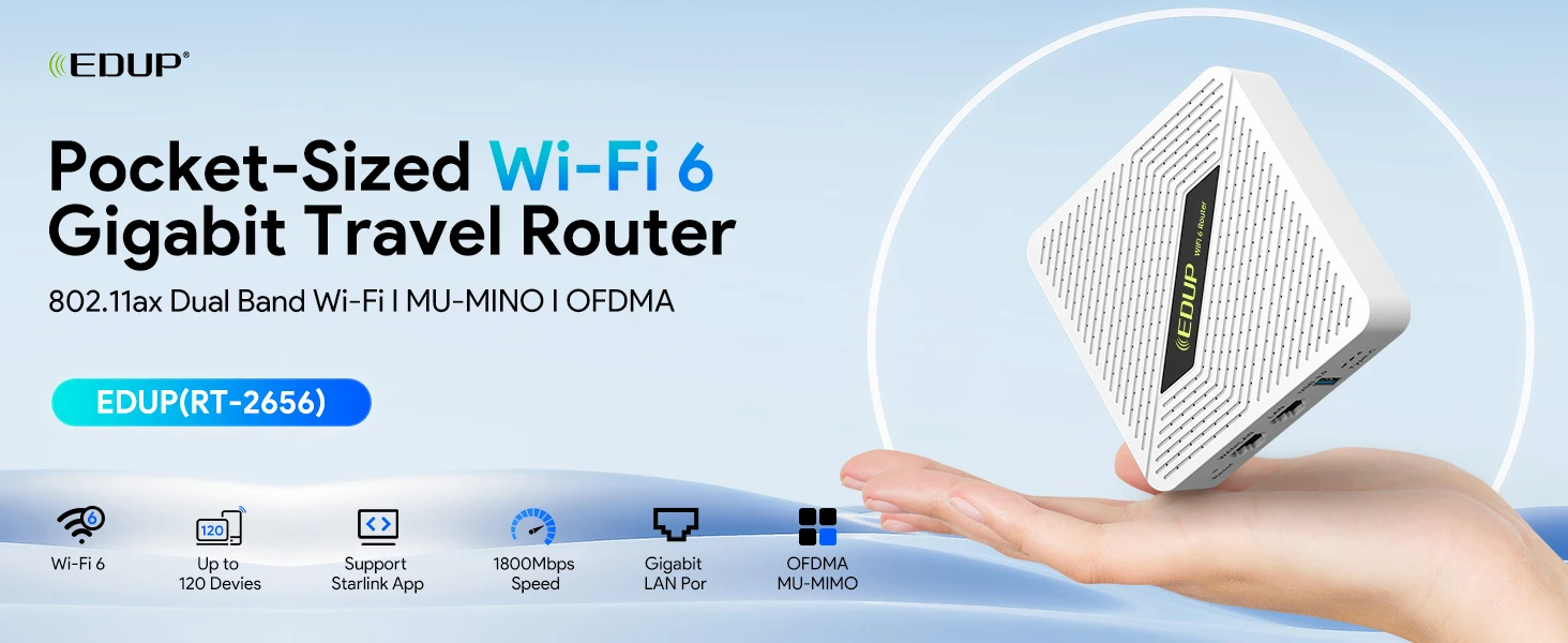 Enrutador inalámbrico portátil EDUP RT2656 Starlink 1800Mbps bolsillo de alta velocidad Wifi6 modos de trabajo múltiples banda doble 2,4GHz/5GHz bolsillo