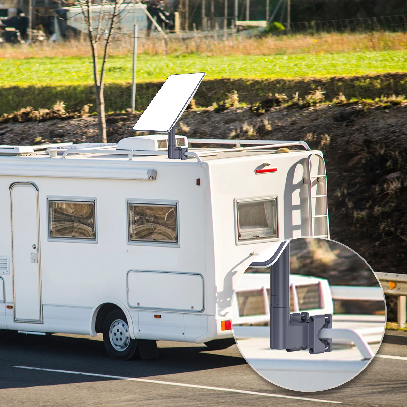 Este soporte portátil Starlink RV Mount, completo con un adaptador de tubería Starlink, se fija fácilmente a diversas superficies como postes, techos, vehículos recreativos y SUV, brindando flexibilidad para cualquier escenario de instalación.