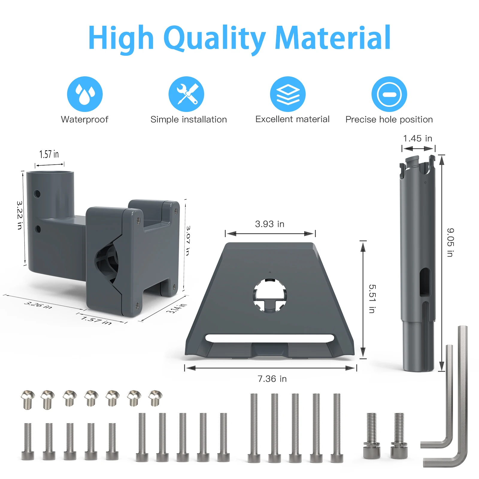 【Durable and Anti-Corrosive Design】 V3 Starlink pole mount features an electrophoresis process, providing anti-corrosive and anti-rust properties. This ensures long-lasting outdoor use without the worry of rust, enhancing the longevity of your equipment. The high-grade gray aluminum perfectly complements your Starlink antenna.