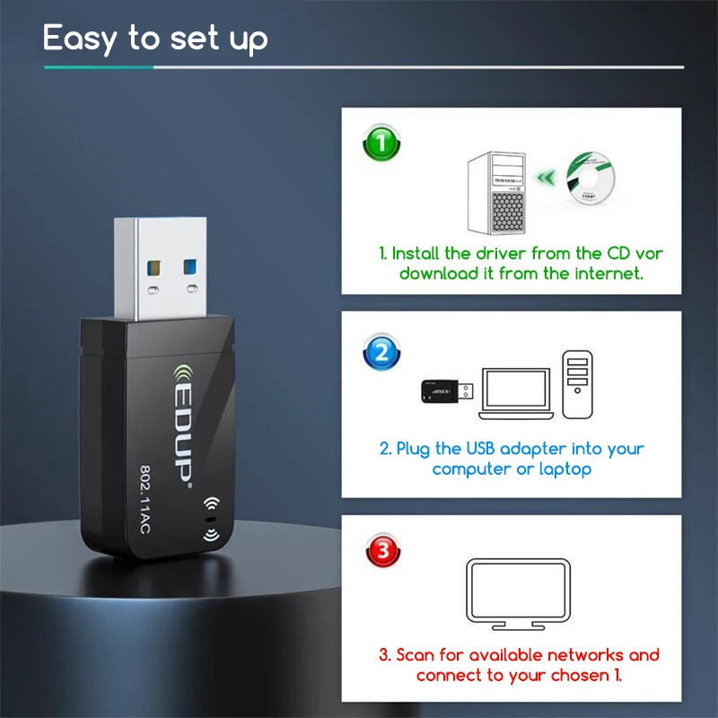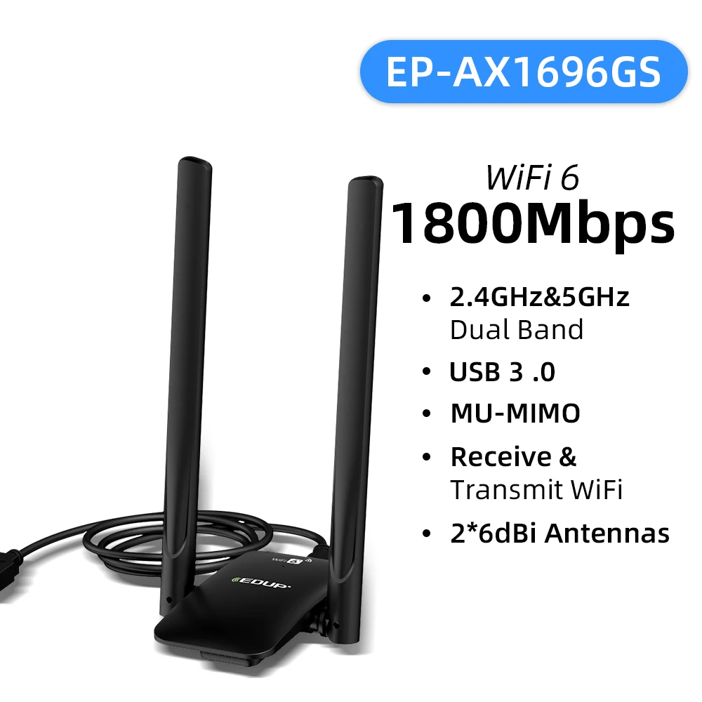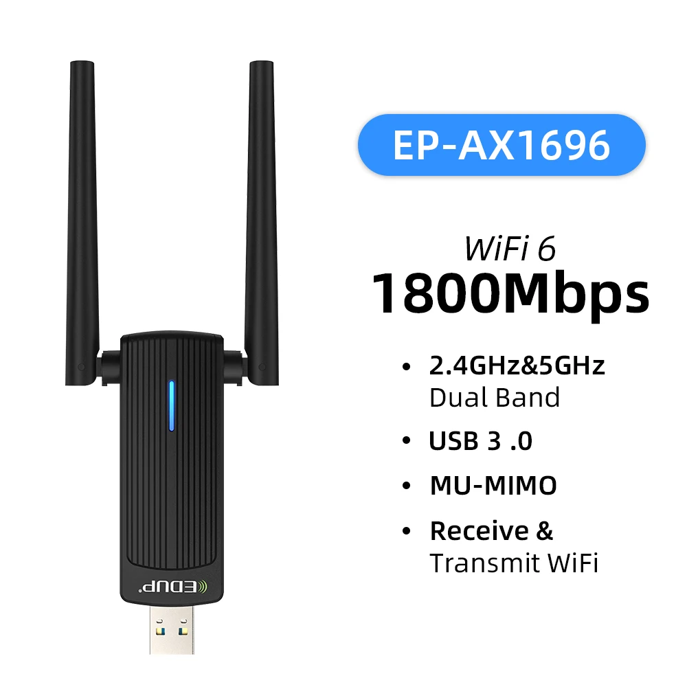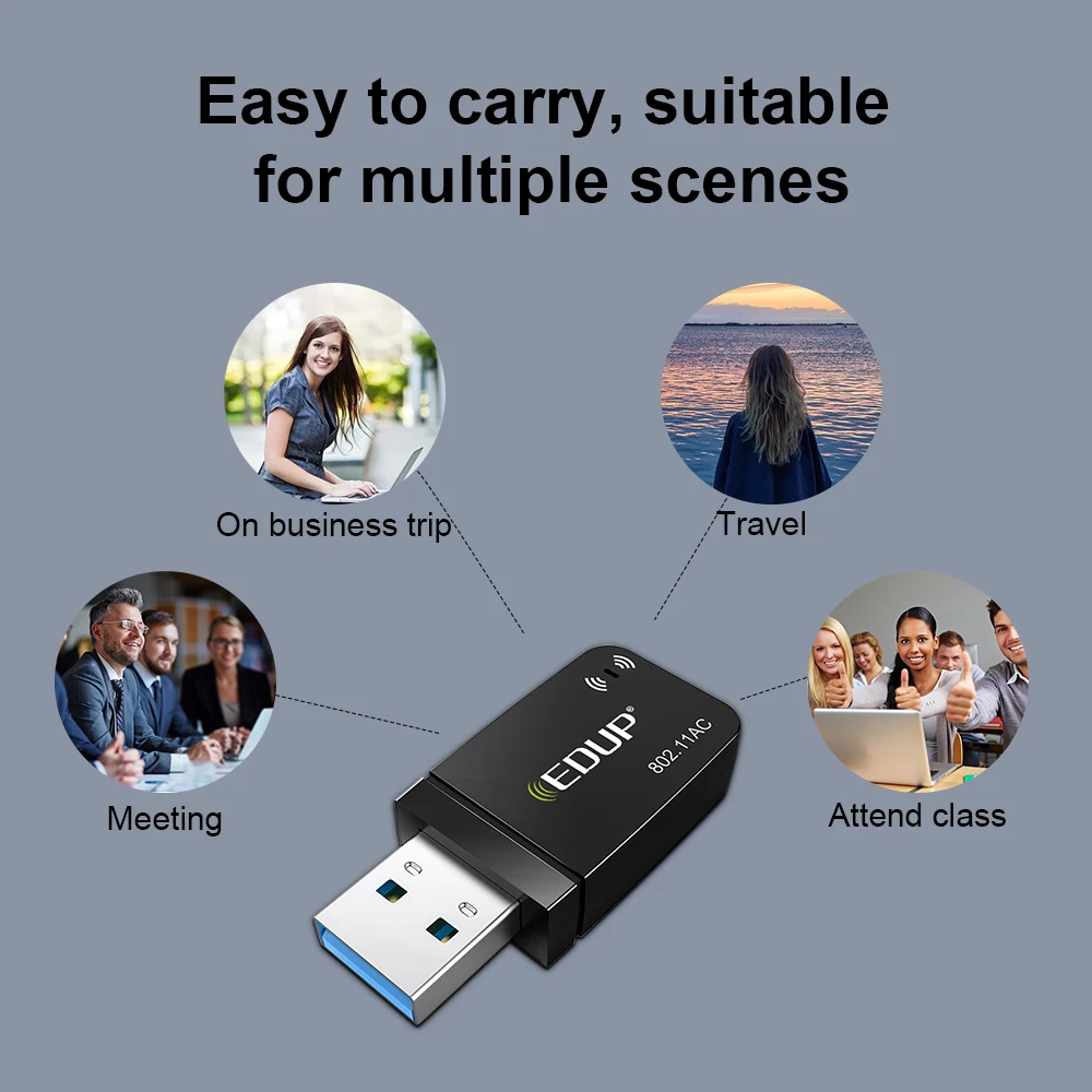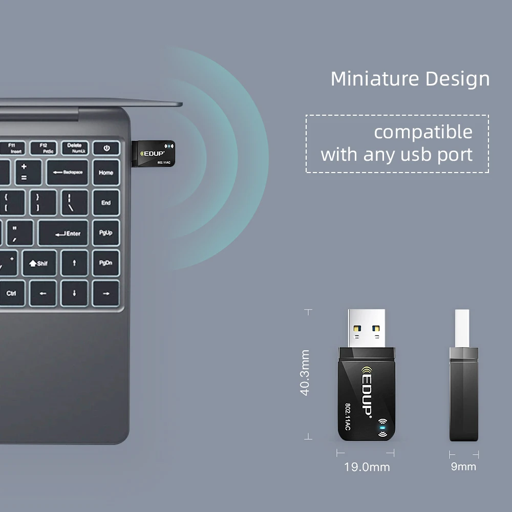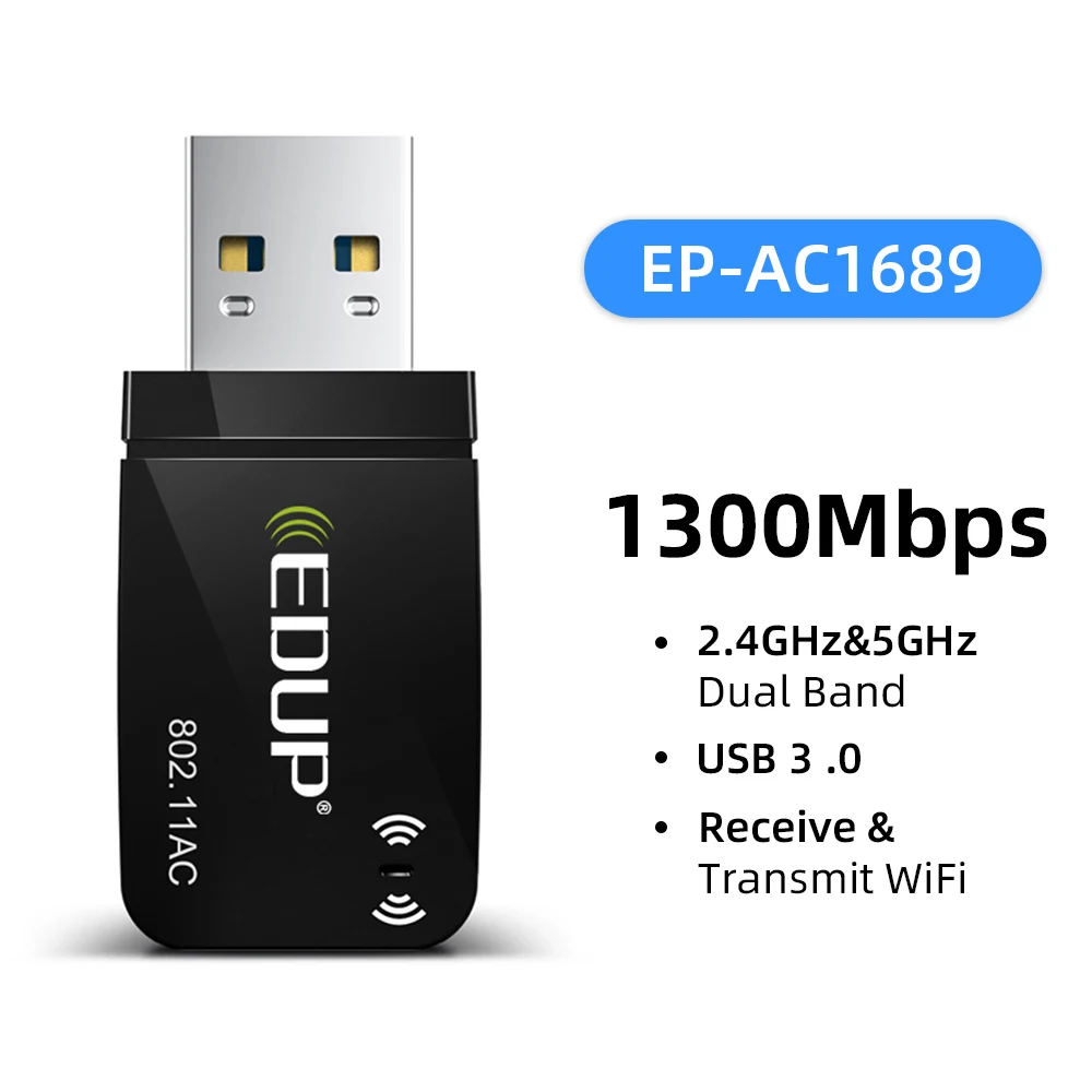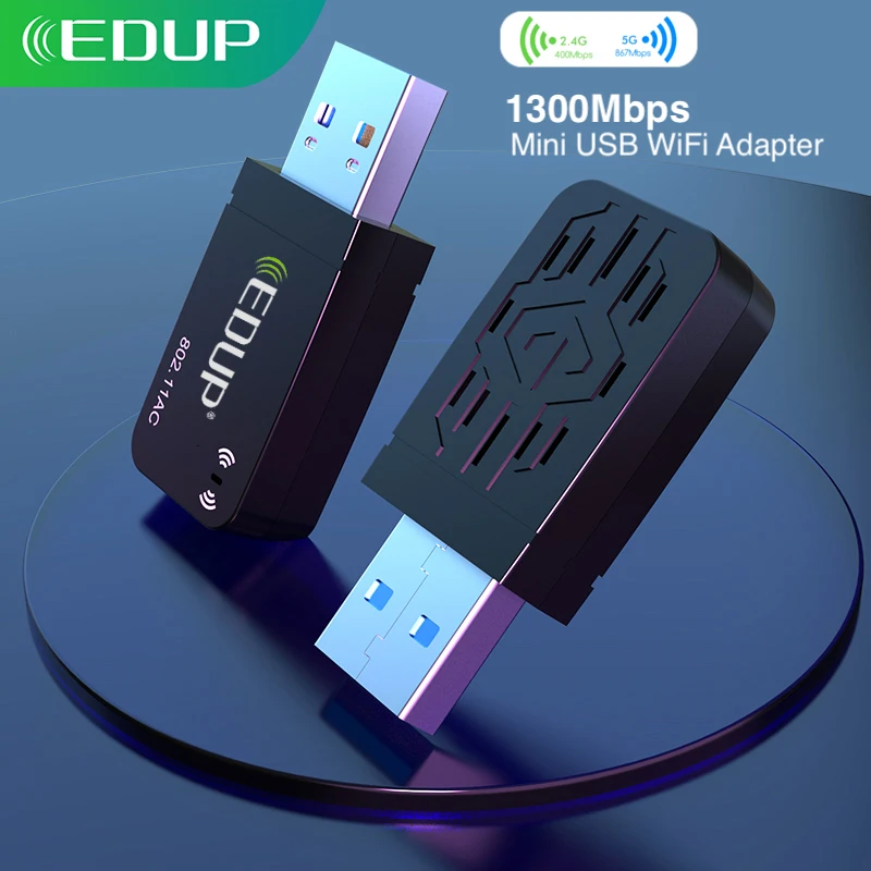 Comprar EDUP-tarjeta de red inalámbrica 2,4G, 5G, 1300Mbps, WiFi de doble banda, Mini Usb 3,0, adaptador inalámbrico para PC, escritorio y portátil