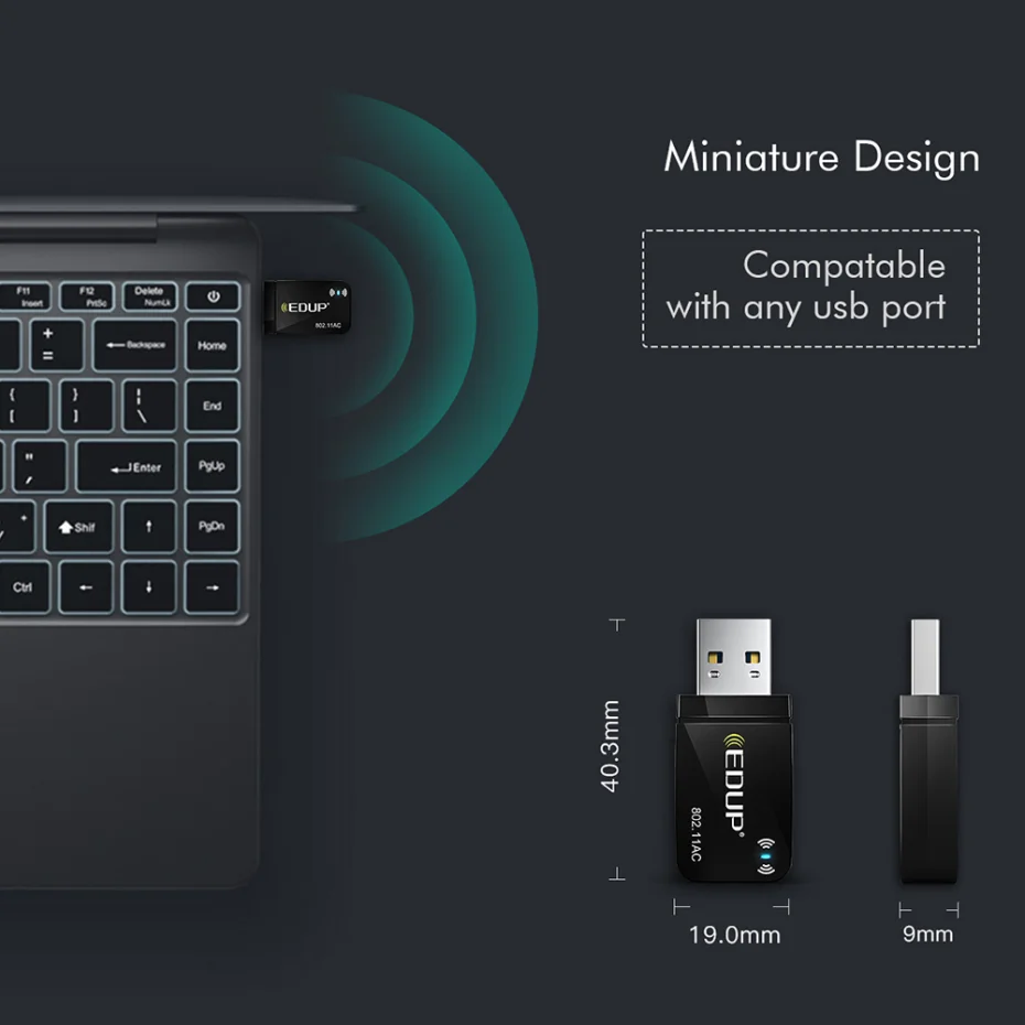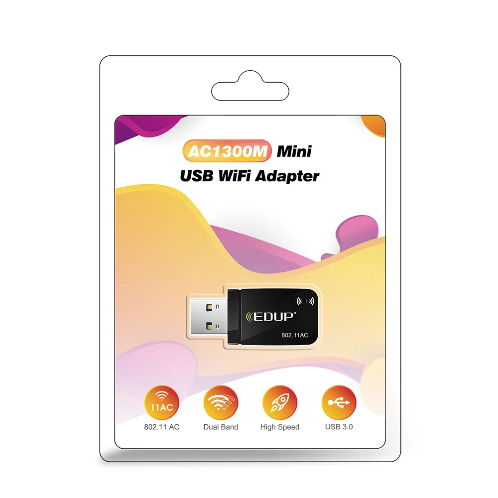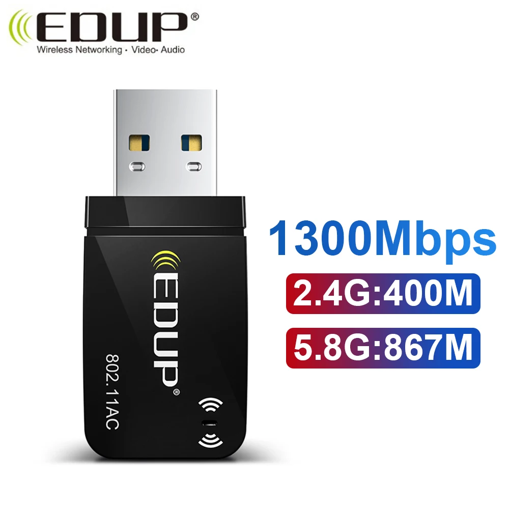 Comprar EDUP-tarjeta de red inalámbrica USB 1300 de doble banda, adaptador Lan 802.11ac WIFI, Mini adaptador Wi-Fi portátil para PC y portátil, 3,0 Mbps