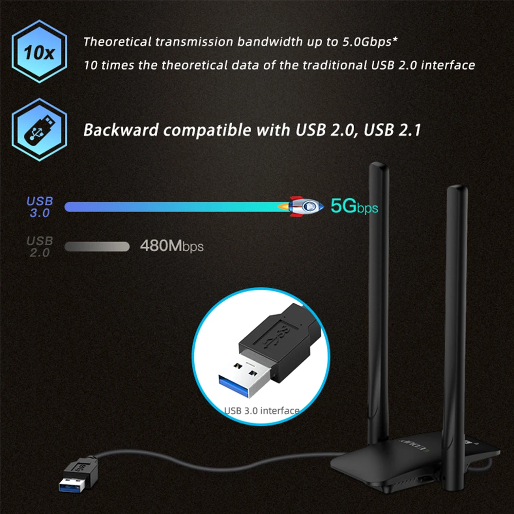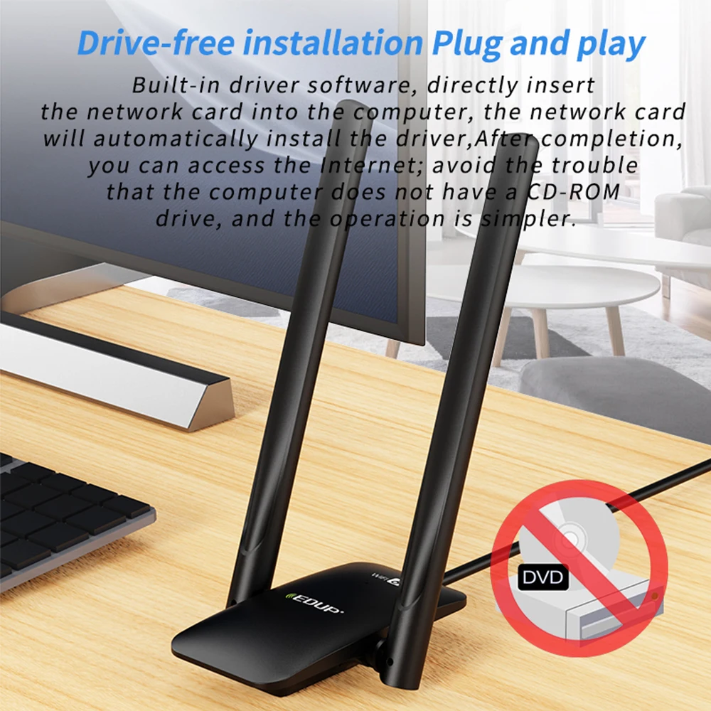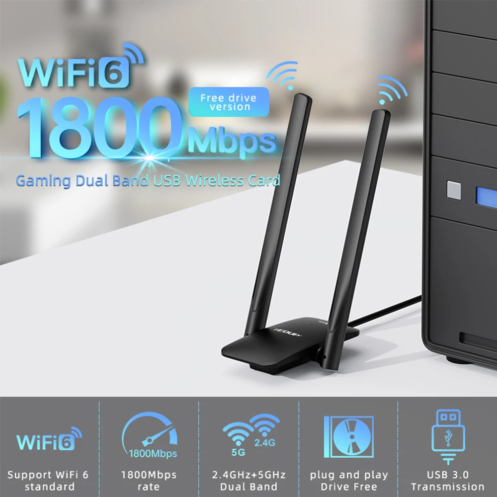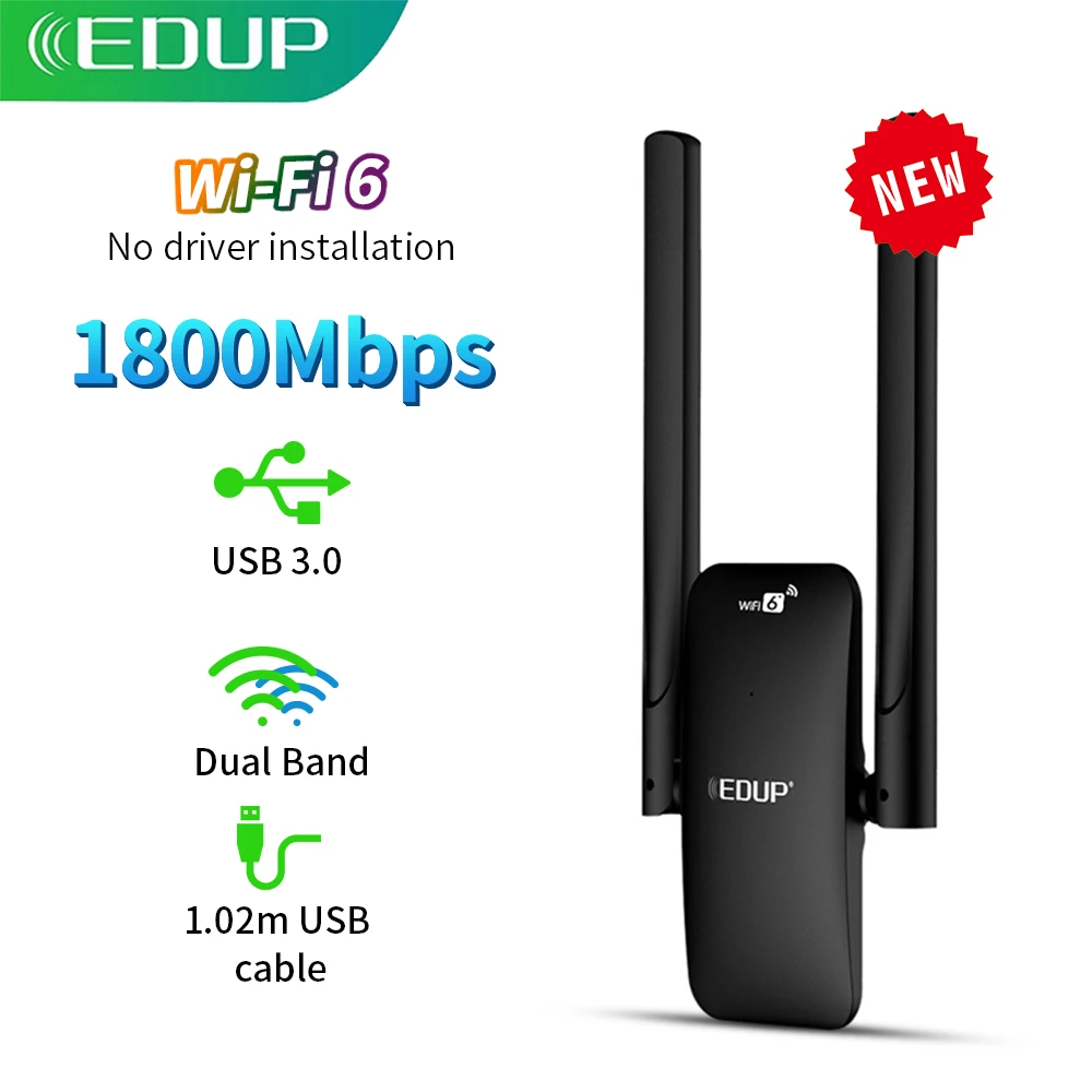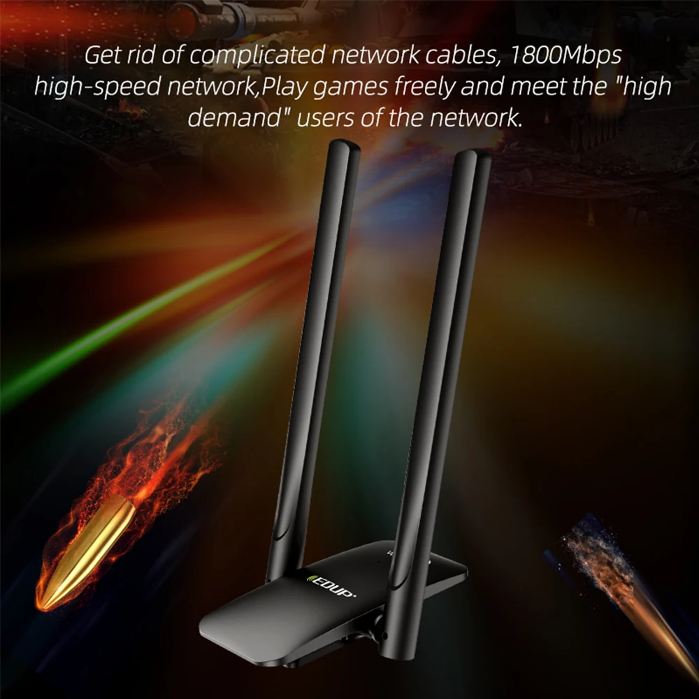 Comprar EDUP-tarjeta de red inalámbrica WiFi6, Unidad de 2,4G y 5GHz, adaptador WiFi USB 3,0, antena giratoria 802.11AX para Win11/Win10