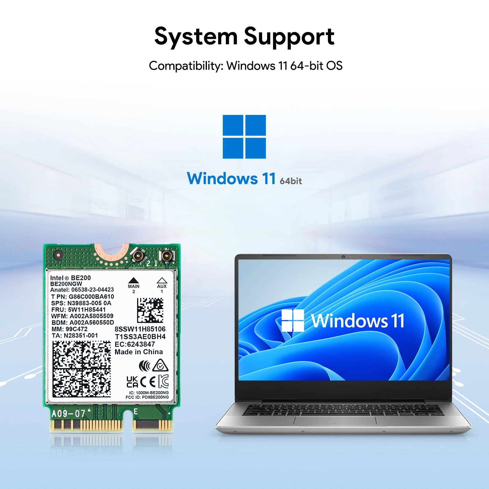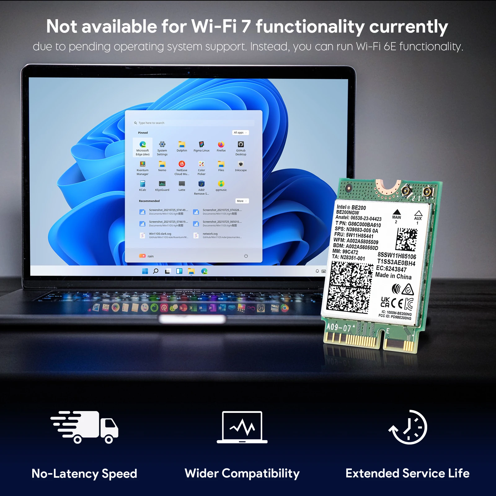 • Intel Wi-Fi 7 BE200 admitirá Wi-Fi 6E + 320 MHz/4K QAM cuando se conecte a un enrutador/AP inalámbrico Wi-Fi 7.