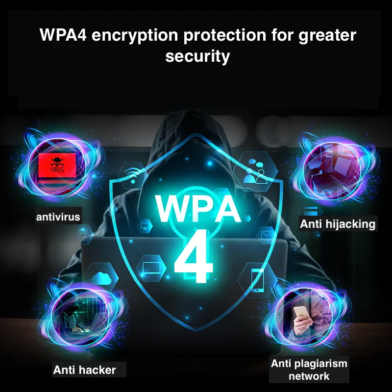 El método de cifrado WPA2 utilizado por los dispositivos wifi5 ya se ha desglosado por métodos como KRACK. WPA4 tiene un mayor factor de seguridad y protege la privacidad de forma más segura.