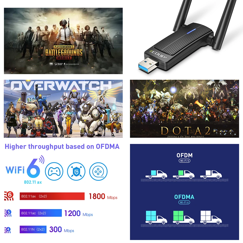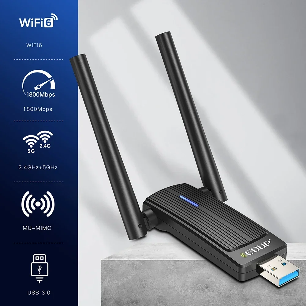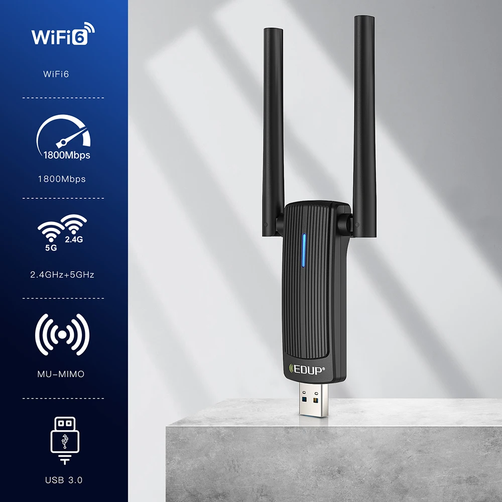 Comprar EDUP WiFi6 USB WiFi adaptador 1800Mbps doble banda AX1800 2,4G/5GHz tarjeta de red Wifi Dongle MU-MIMO USB3.0 para PC portátil Windows