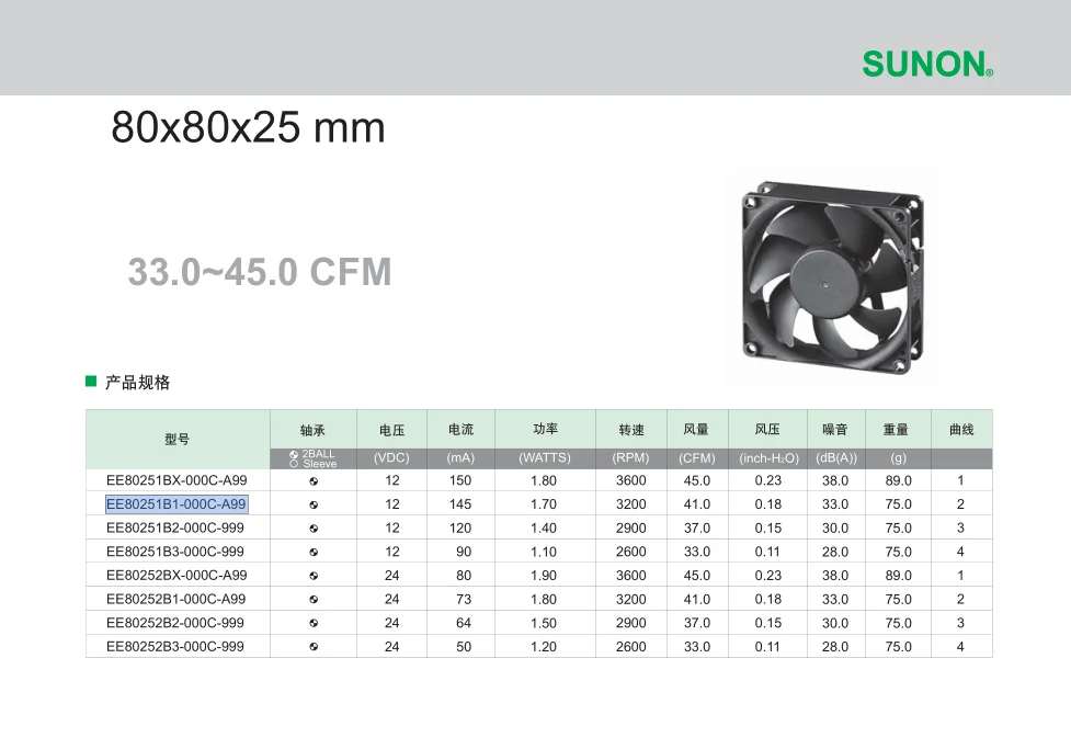 Comprar EE80251S1-0000-A99-ventilador de refrigeración para SUNON DC, 12V, 1,7 W, 8CM, 8025, nuevo