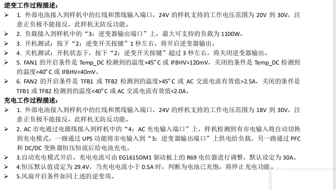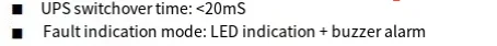 Funciones de protección: subtensión de la batería y sobretensión de la batería, sobrecarga de salida, sobrecorriente de salida, PCB sobre protección de temperatura e IGBT sobre protección de temperatura, cortocircuito de salida