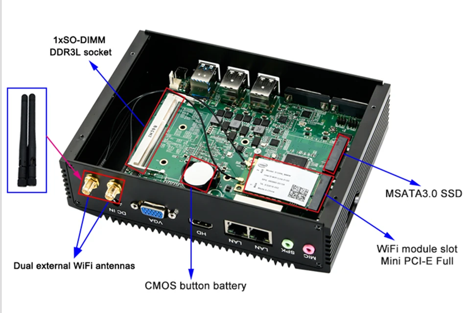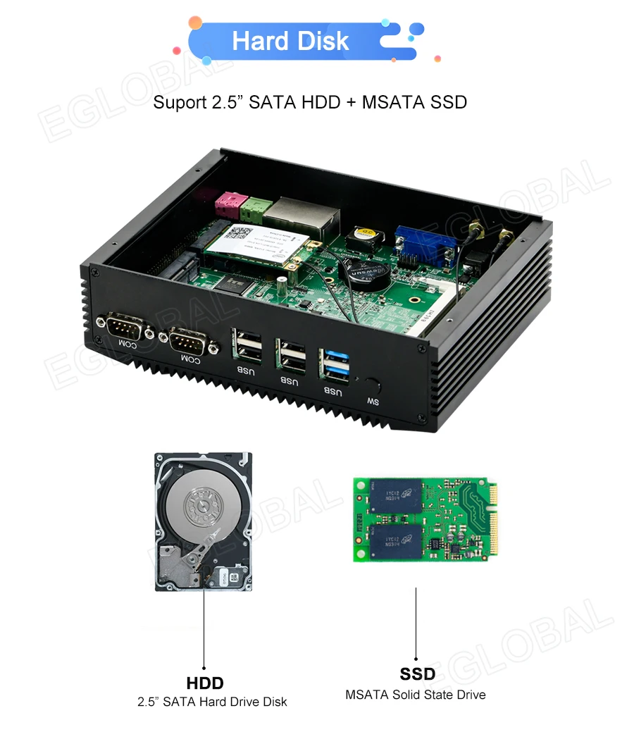 -- Admite almacenamiento dual 1 * mSATA + 1*2,5 pulgadas SATA SSD/HDD, puertos multi-usb,
