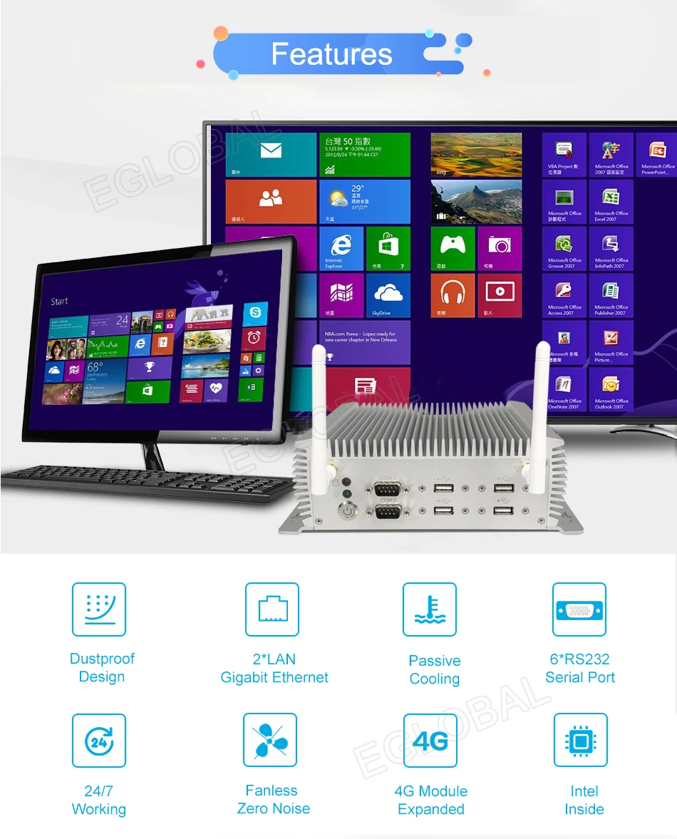 Comprar EGLOBAL Industrial Mini PC sin ventilador i7 4500U i5 Windows 10 Pro Linux 2 * Intel LAN 6*6 * RS232/ 485 HDMI VGA 8 * USB WiFi reloj de perro 3G/4G