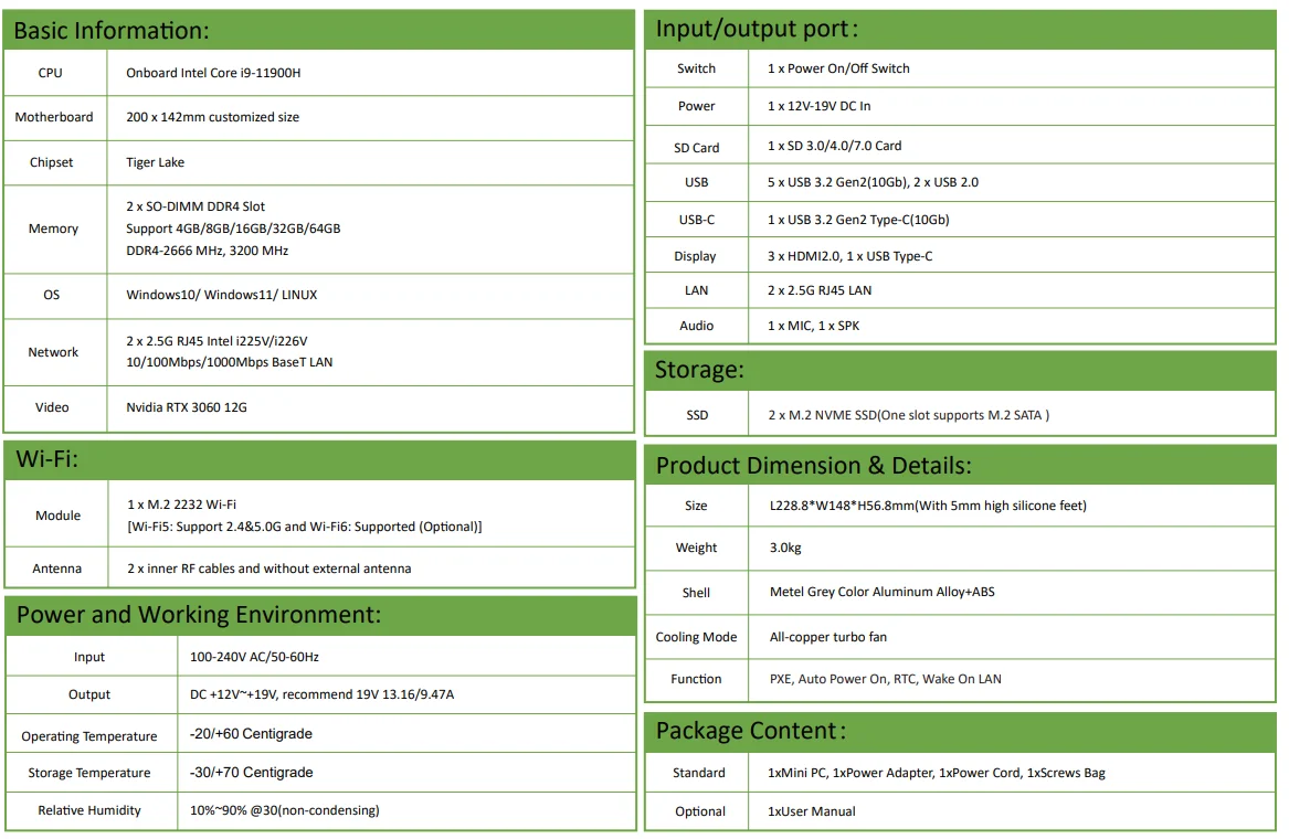 Comprar Eglobal-Mini PC Gamer i7 12700H i9 11900H NVIDIA RTX 3060 12G GDDR6 2x2,5G LAN 2 x DDR5 Windows 11, ordenador compacto, WiFi6, nuevo