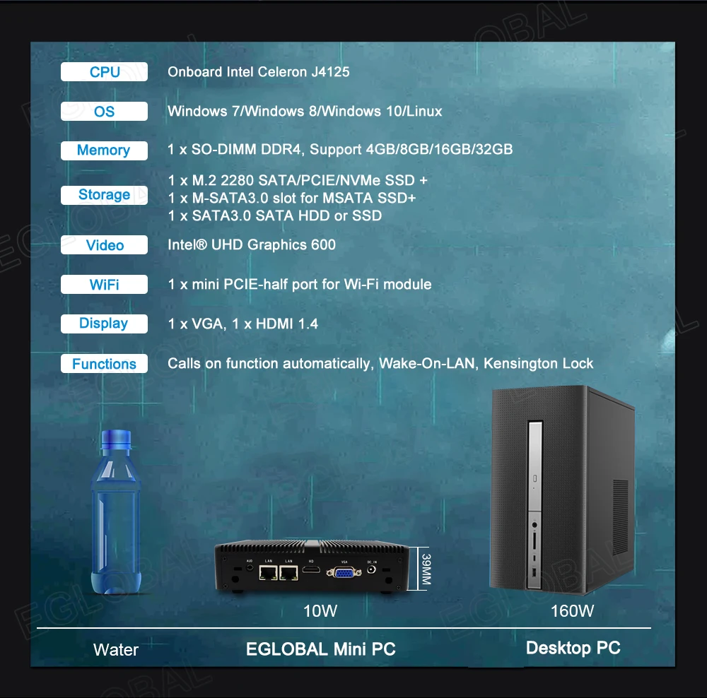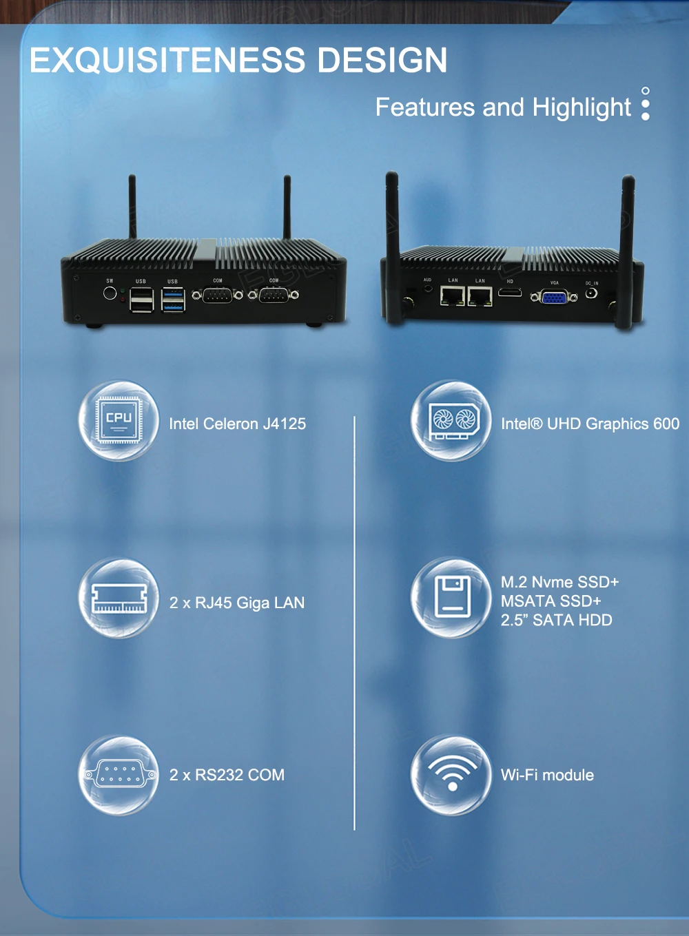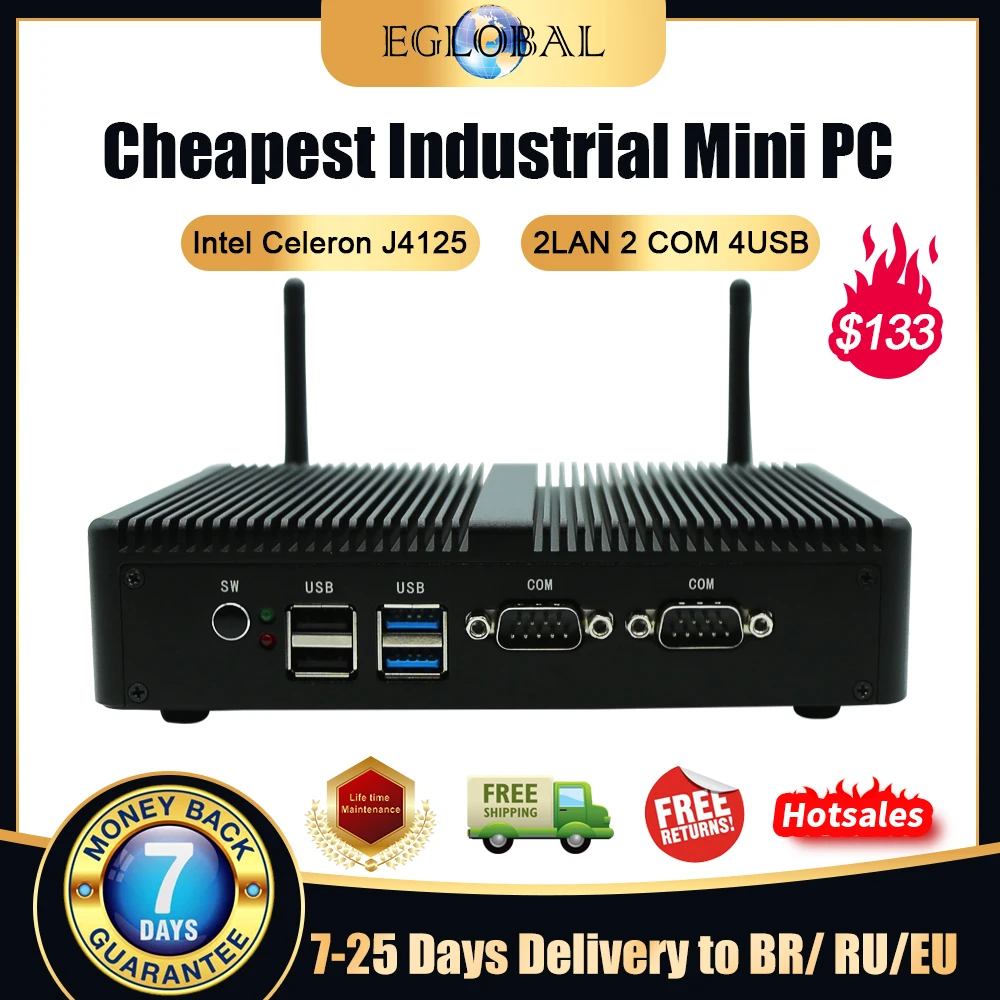 Comprar Eglobal-Mini PC Industrial Intel Celeron J4125, ordenador de escritorio, 2 RJ45 Lan 2 RS232 Com 2 USB3.0 2 USB 2,0 DDR4 HDMI VGA