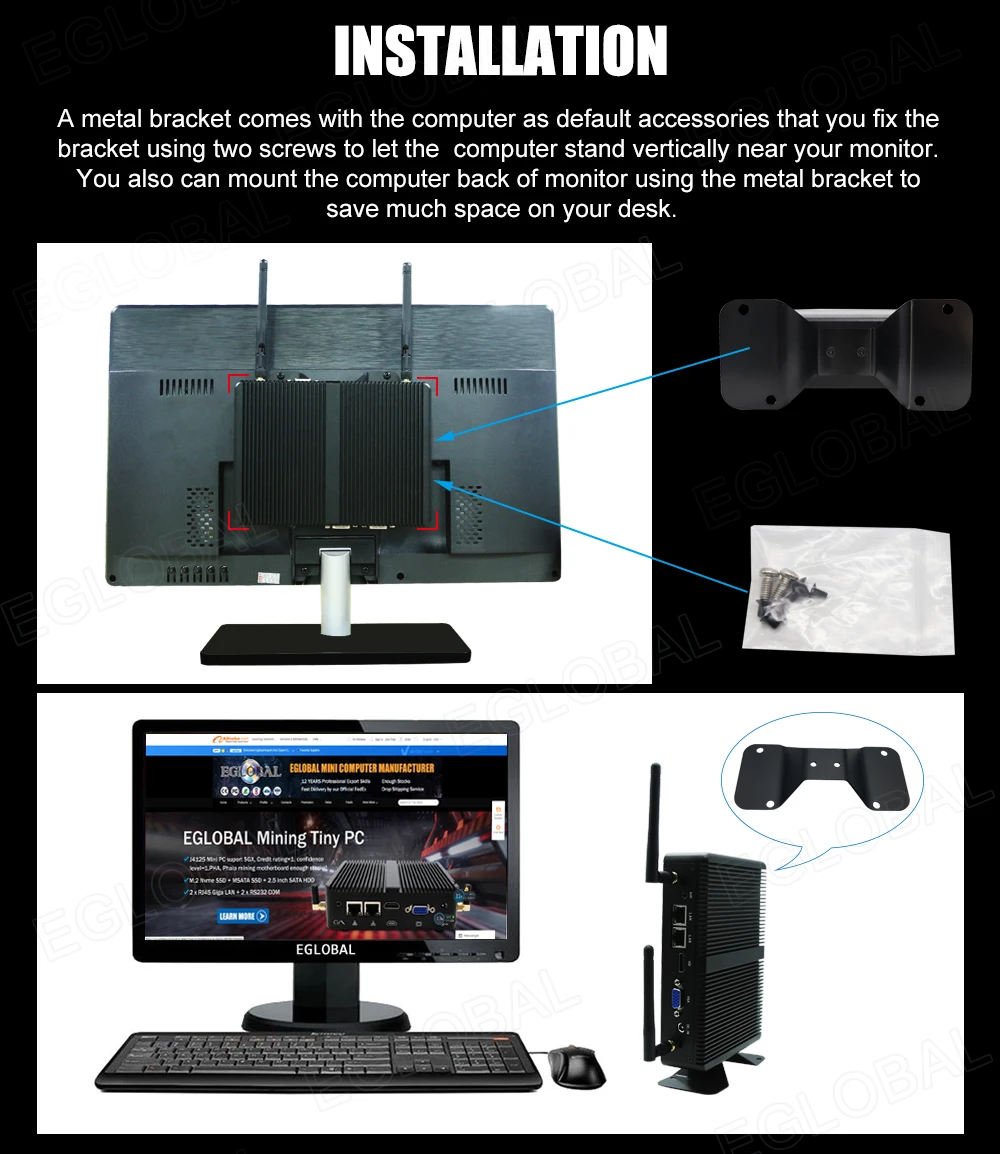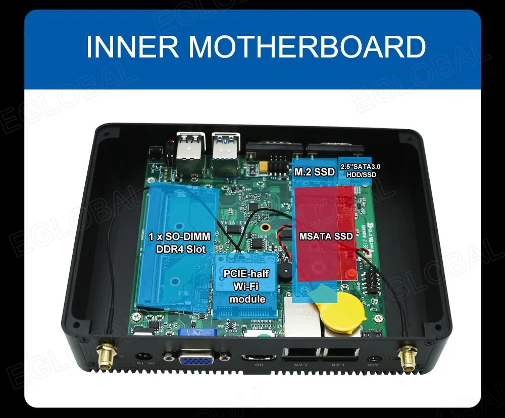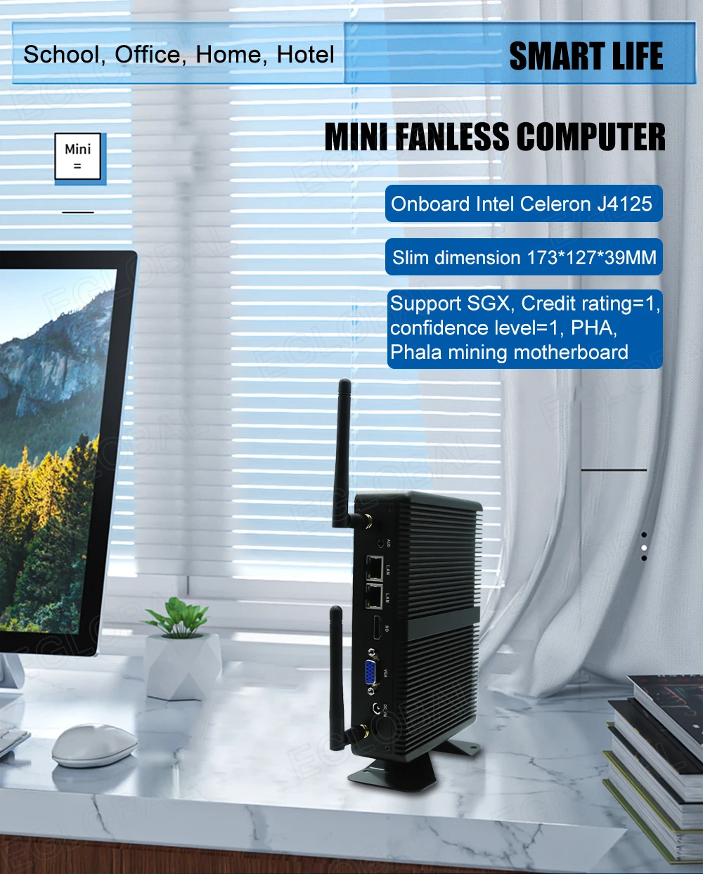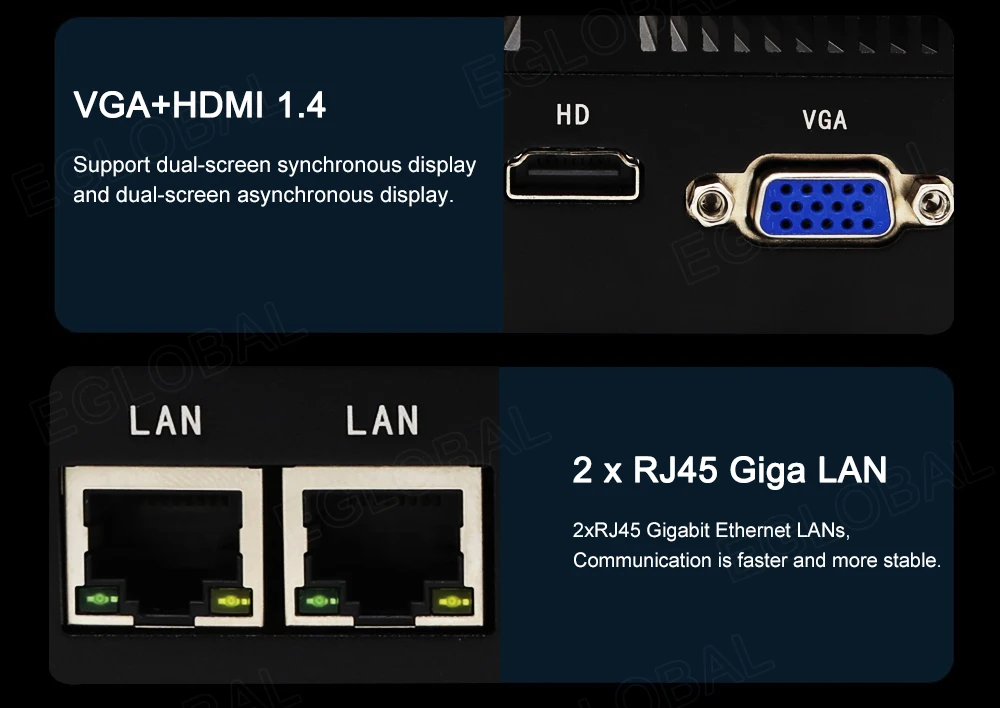 Comprar Eglobal-Mini PC Industrial Intel Celeron J4125, ordenador de escritorio, 2 RJ45 Lan 2 RS232 Com 2 USB3.0 2 USB 2,0 DDR4 HDMI VGA