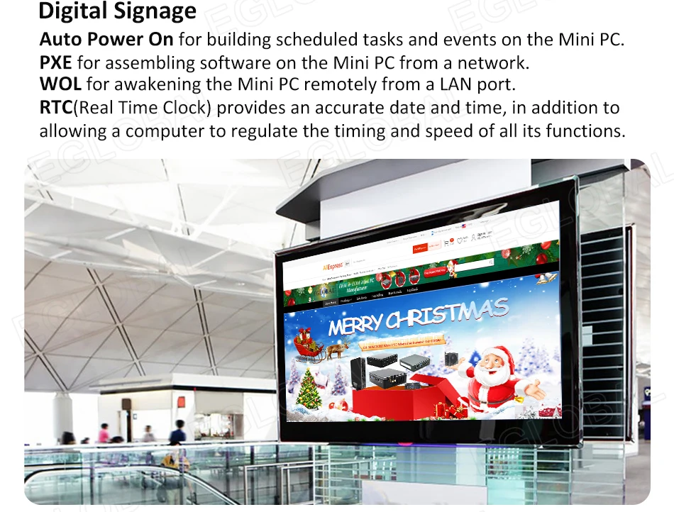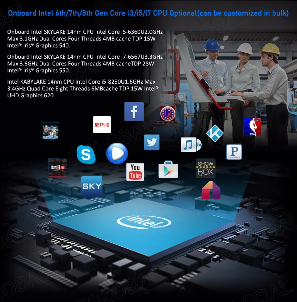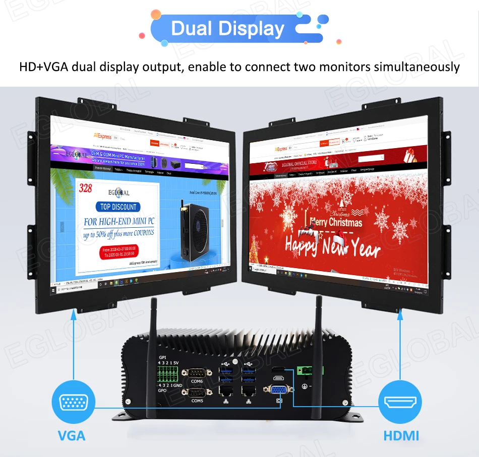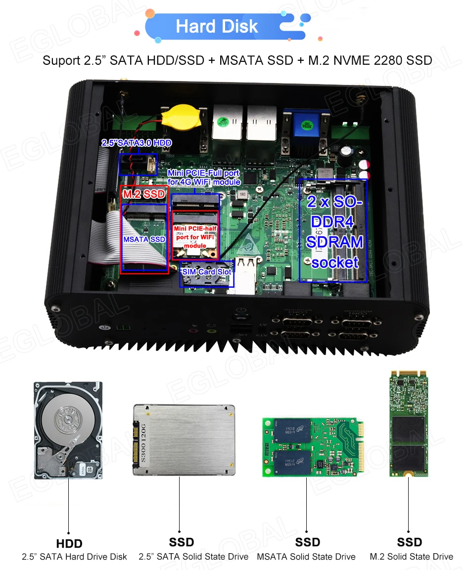 Audio1 x micrófono, 1 x SPKOtros1 x Restablecimiento, 1 x botón CMOS claro, 1 x Entrada de fuente de alimentación de terminal Phoenix de 2 pinesAlmacenamientoMSATA/M.21 ranura para SSD MSATA de, 1 ranura M.2 PARA SSD M.2 NVMeSATA1 ranura SATA3.0 para SATA HDD o SSDWi-FiMódulo1 x mini PCIE-medio puerto para módulo Wi-Fi/Bluetooth1 x mini puerto completo PCIE para módulo 3G/4G/Wi-Fi/BluetoothAntena2 x cables RF internos y 2 x antenas externasPotencia y entorno de trabajoEntradaAC/50-60HzSalidaDC + 9V ~ + 36V, recomendado 12V/5ATemperatura de funcionamiento-20/+ 60 centígradosTemperatura de almacenamiento-30/+ 70 grados centígradosHumedad almacenamiento10% ~ 90% @ 30 centígrados (sin condensación)Dimensiones y detalles del productoTamaño150*83*224mm (chasis de 248mm)PesoRed 1,3 KG, Bruto 3,5 KGCarcasaAleación de aluminio de color negro/plateado (cualquier color personalizado para pedidos a granel)Montaje4 agujeros de montaje en estucheModo enfriamientoSin ventiladorFuncionesWatchdog, AWAL, RTC, WOL (modo ATX)Contenido del paqueteEstándar1xMini PC, 1xAdaptador de corriente, 1xCable de alimentación, 1xBolsa de tornillosOpcionalAntenas Wi-Fi, 1 cable HDMI, 1 manual de usuario, 1 bolsa de tornillos larga Comprar Eglobal-Mini PC Industrial Intel Core i5, 8250U, 10210U, i7, 10510U, 2 LAN, 6 COM, GPIO, VGA, HDMI, Interfaces
