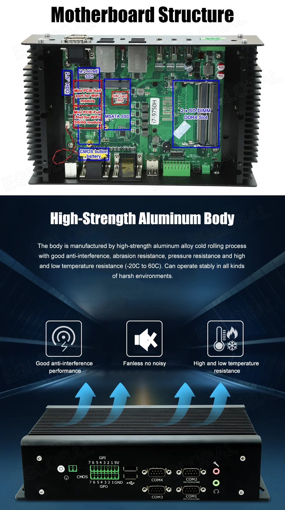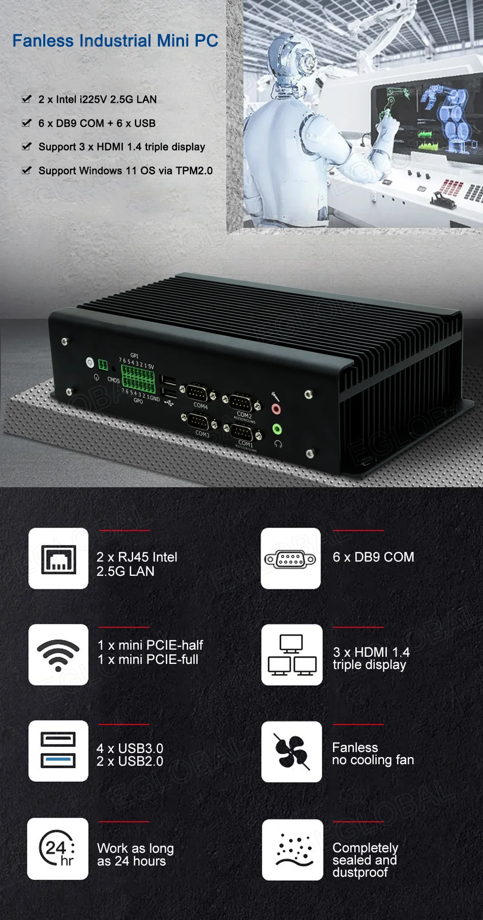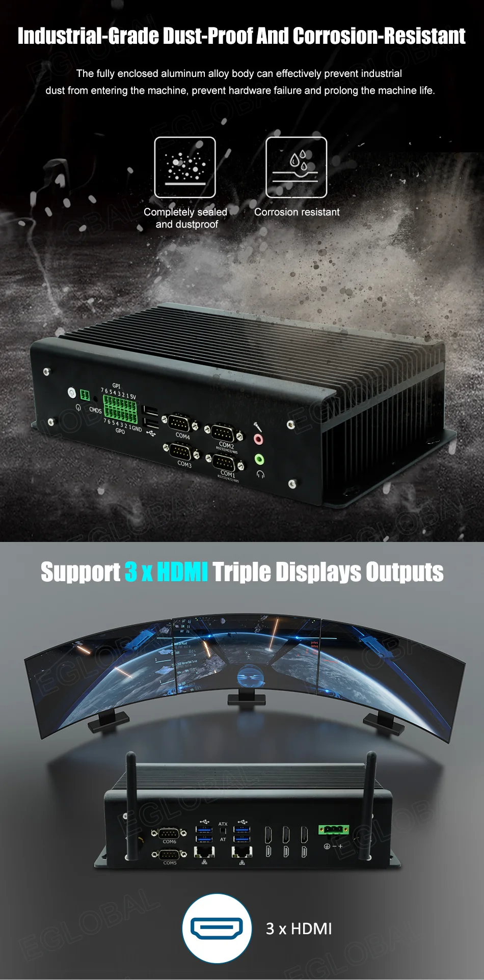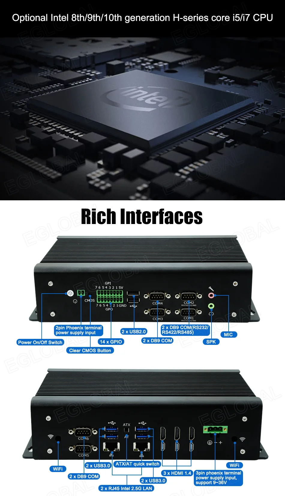 Comprar Eglobal-Mini PC Industrial con Intel Core, i7-8750H, i7-9750H, i5-10200H, 3 pantallas HDMI, novedad