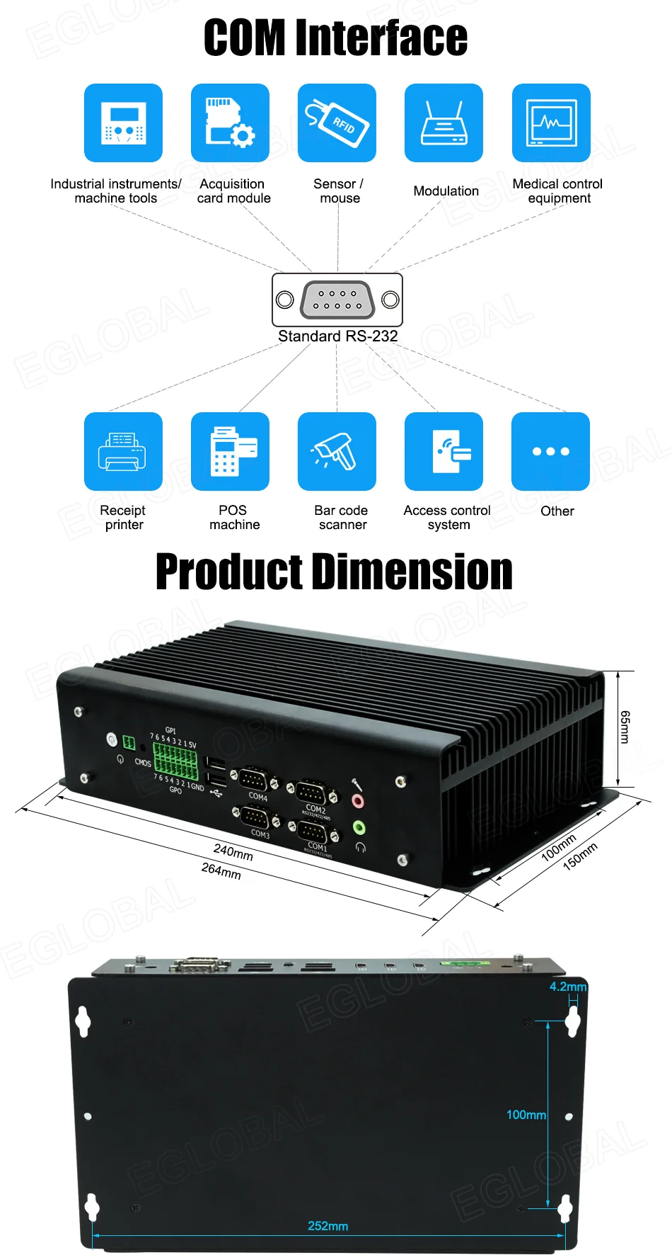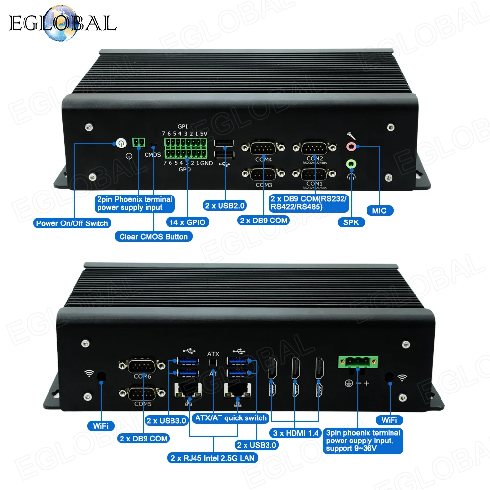 6 x DB9 COM(2xCOM apoyo RS232/RS422/RS485)