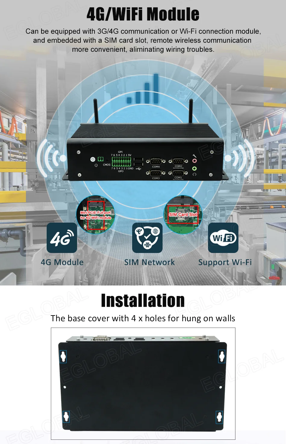 1 mini PCIE-puerto completo para 3G/4G/WiFi y módulo Bluetooth