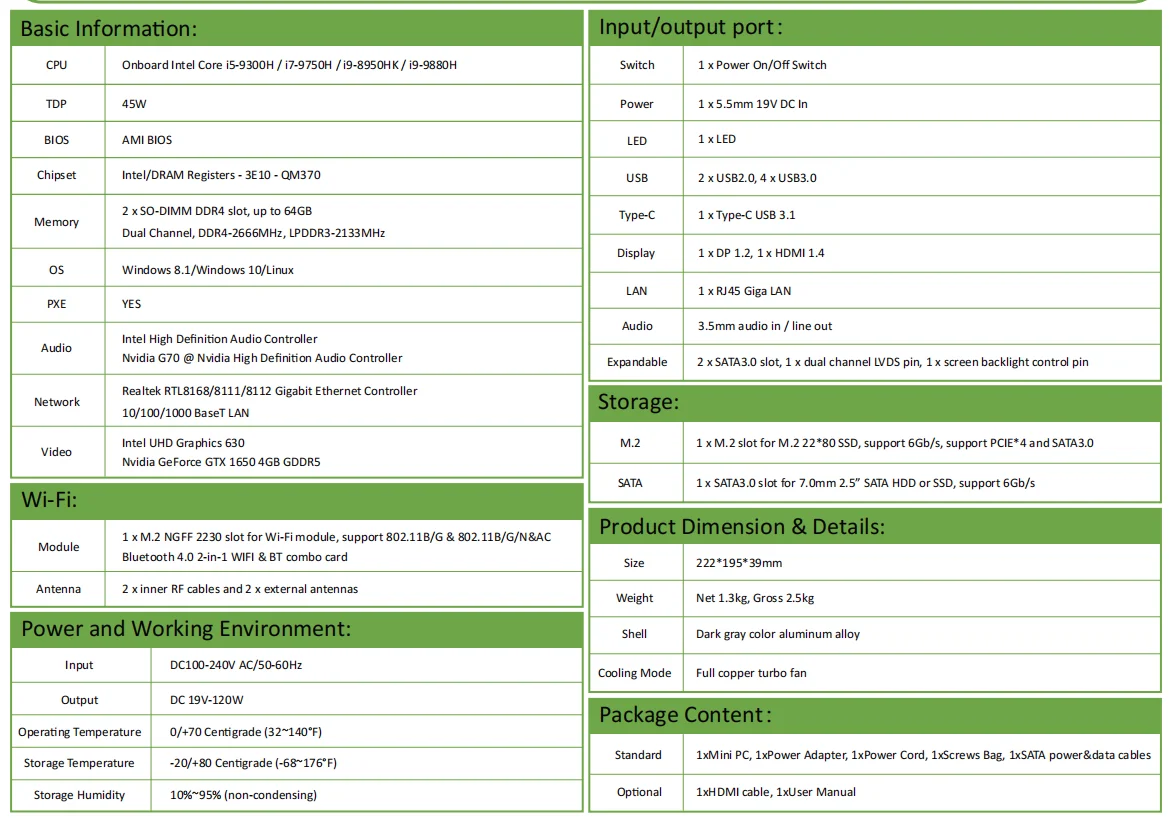 Comprar Eglobal-Mini Pc para juegos con Intel Core i5, 9300H, i9, 9880H, 10880H, i7, 9750H, Nvidia GeForce, GTX 1650, 4GB, 4K, HD, DP, WiFi