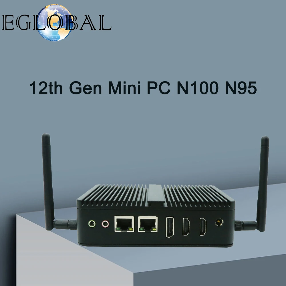 Comprar Eglobal-Mini PC sin ventilador Intel Celeron J6412 N95 N100, con 2 puertos HDMI + 1DP, 2 puertos Com, 2lan, windows 10, portátil de bolsillo, el más barato