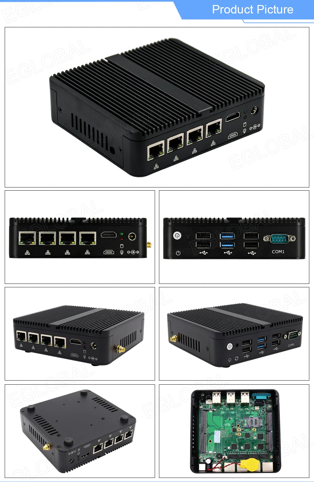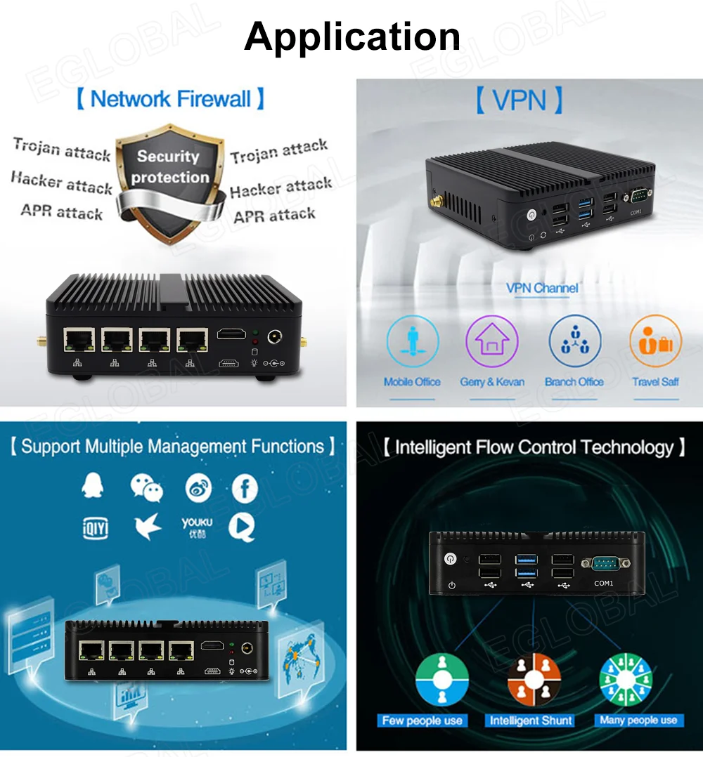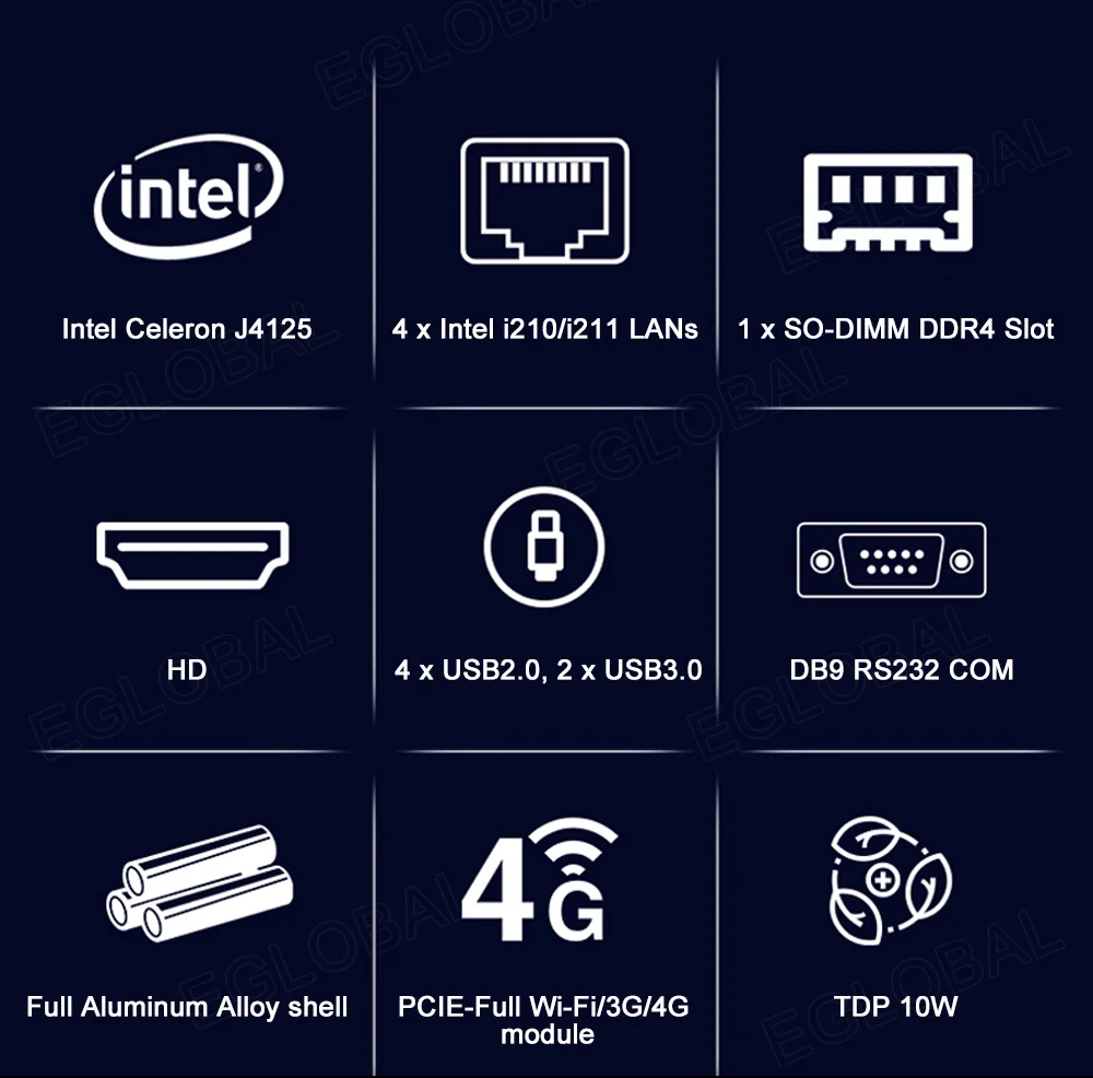 Comprar Eglobal-Mini PC sin ventilador Pfsense J4125, cuatro núcleos, 4 * Intel i210/i211 LANs HDMI COM, ordenador Industrial delgado como Firewall Router VPN