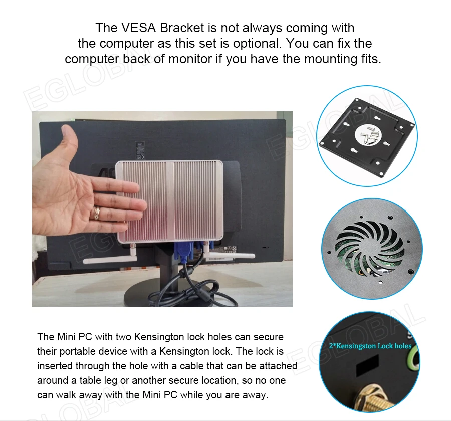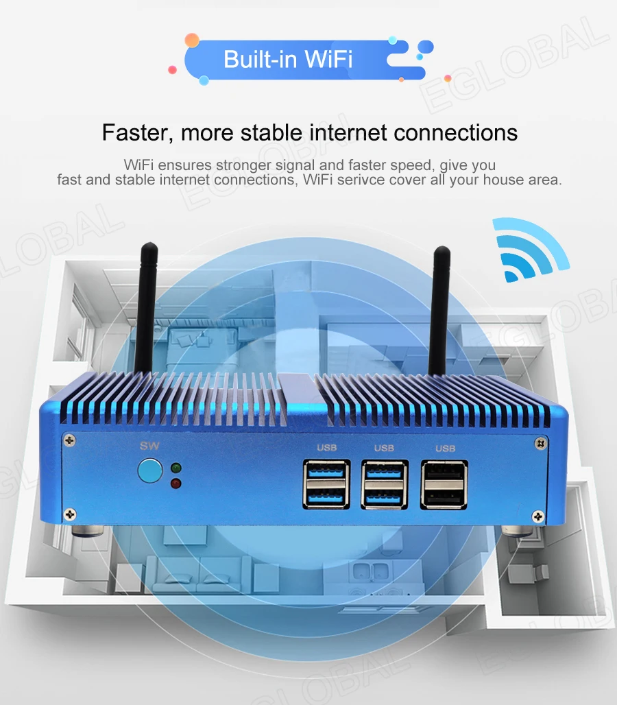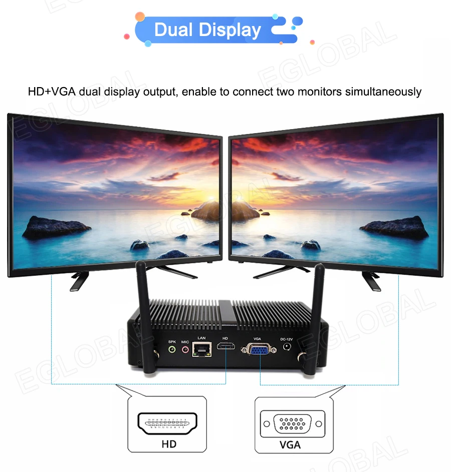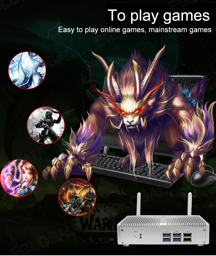 Comprar Eglobal-Mini PC sin ventilador, Windows 10 Pro, Intel i5 7200U, i3 7167U, DDR4/DDR3, componentes de ordenador Barebone 4k, HTPC, WiFi, HDMI, VGA