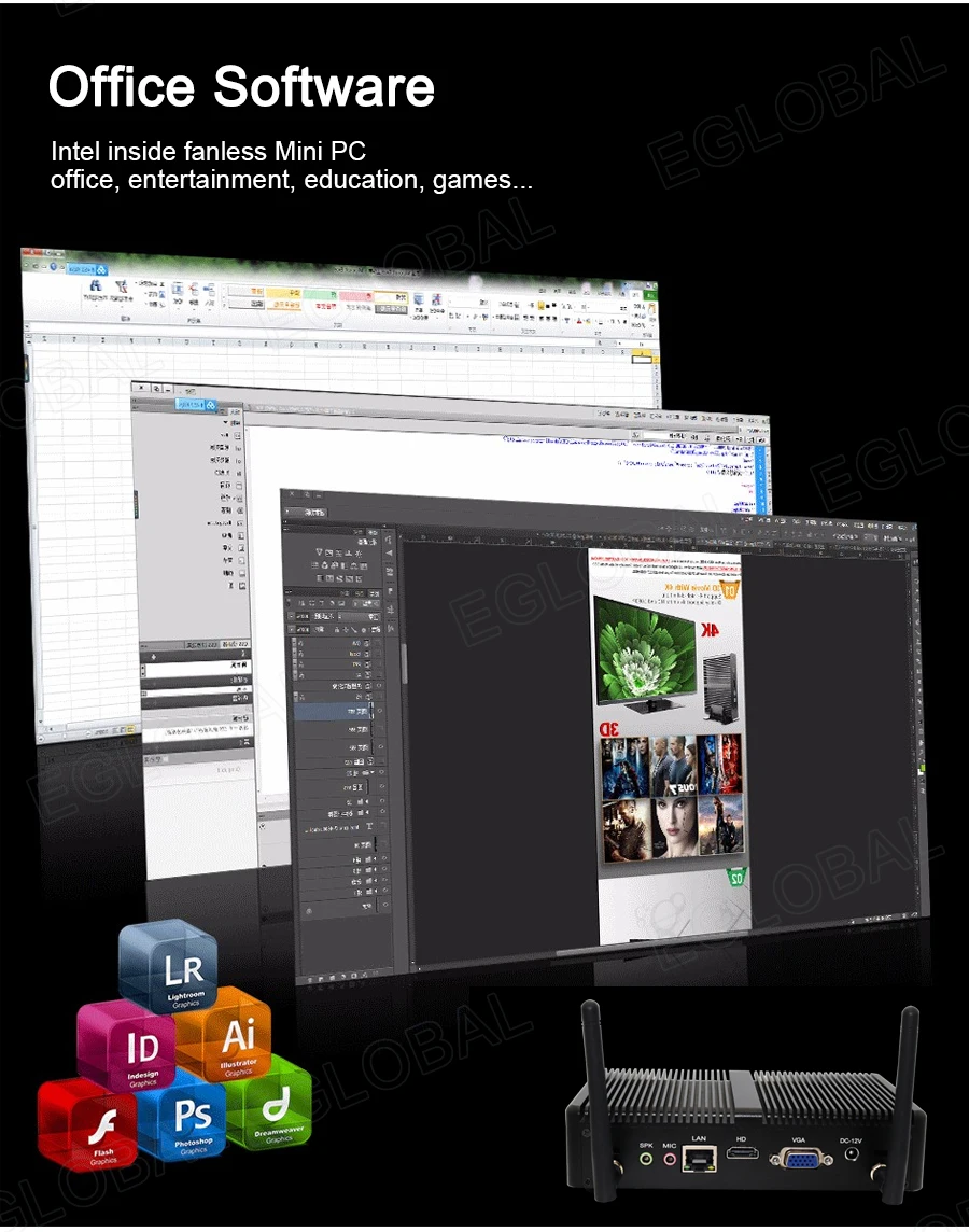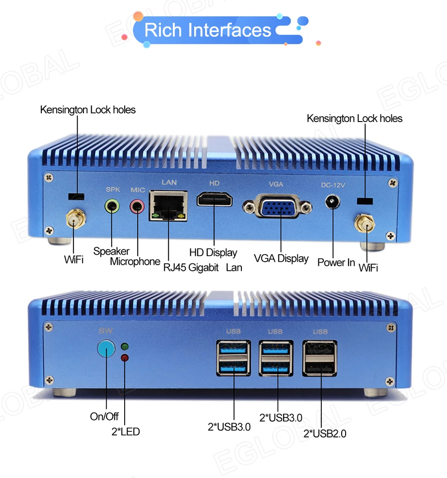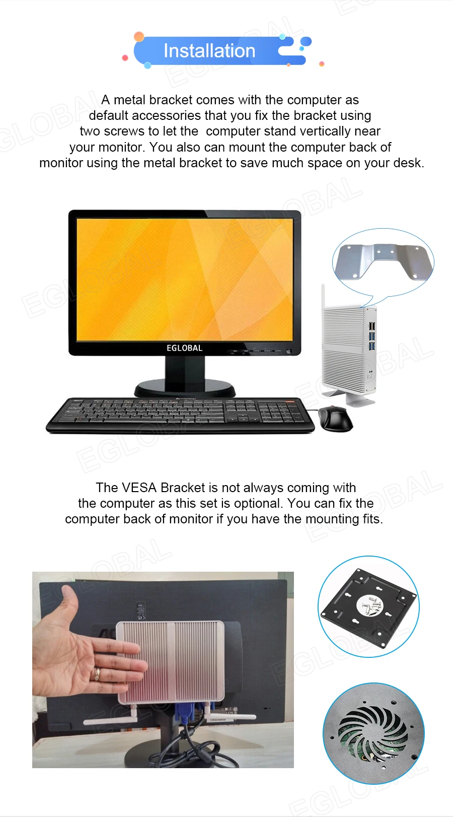 Comprar Eglobal-Mini PC sin ventilador, Windows 10 Pro, Intel i5 7200U, i3 7167U, DDR4/DDR3, componentes de ordenador Barebone 4k, HTPC, WiFi, HDMI, VGA