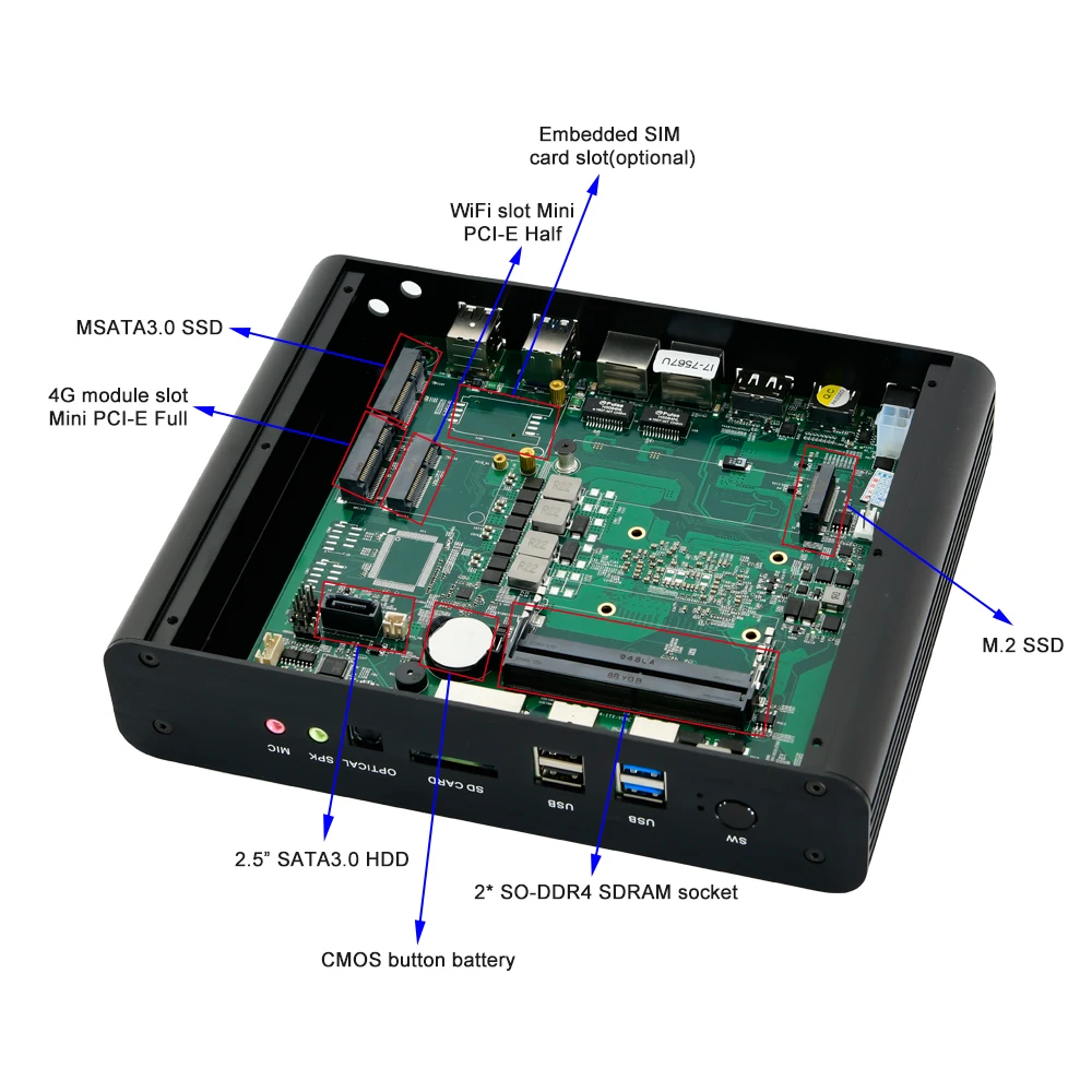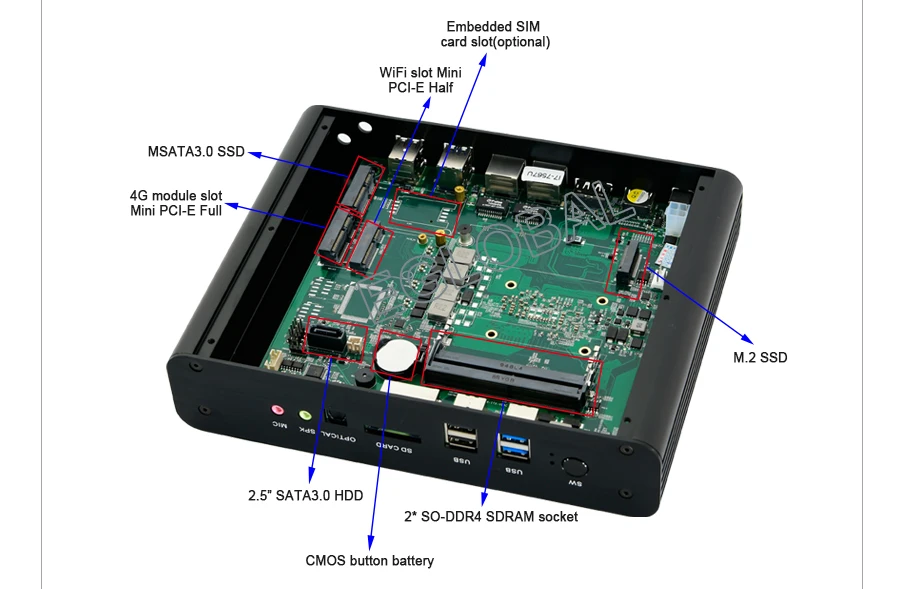 1 x mini puerto completo PCIE para módulo 3G/4G