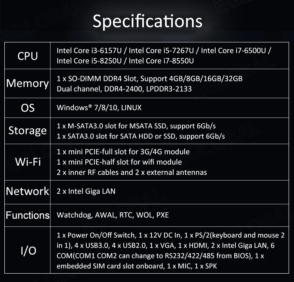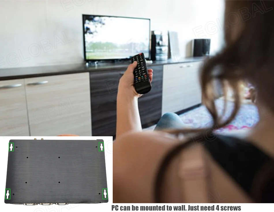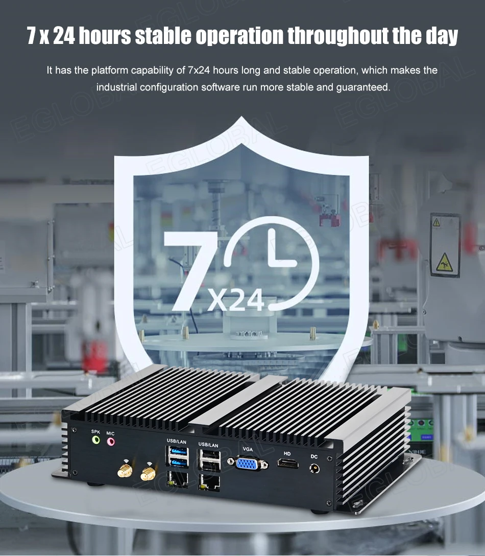 Comprar Eglobal-ordenador con sistema Barebone Windows Linux, Mini PC Industrial sin ventilador, 7x24 horas de trabajo, 4 USB 2,0, 4 USB 3,0, WIFI, 2 Lan