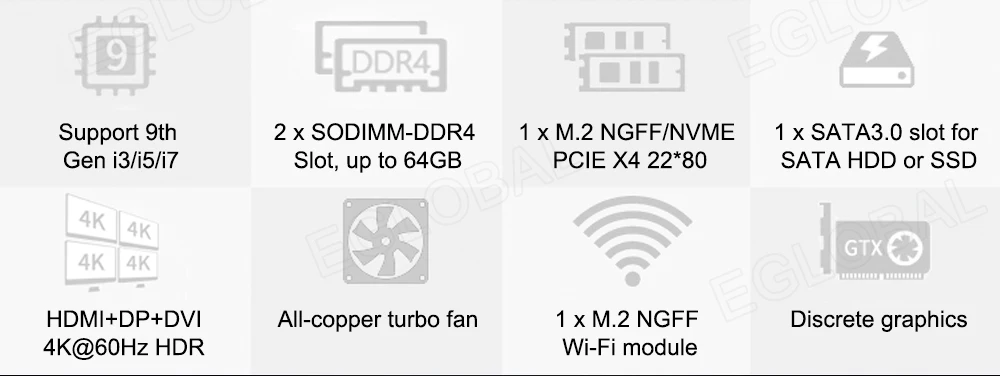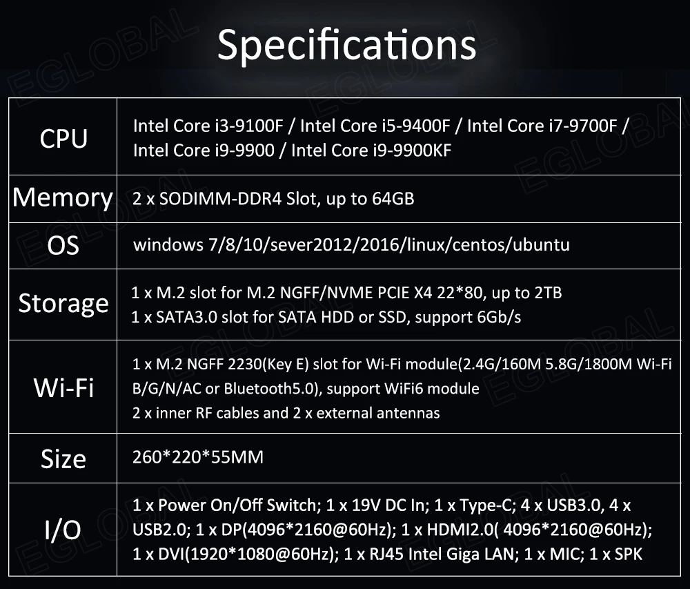 Comprar Eglobal-ordenador de sobremesa para Gamer, Mini ordenador con procesador Intel Core i9-10900F, GTX1650, 64GB de RAM, M.2, NVMe, SSD, Windows 11, HTPC, CA, WiFi, tarjeta de vídeo