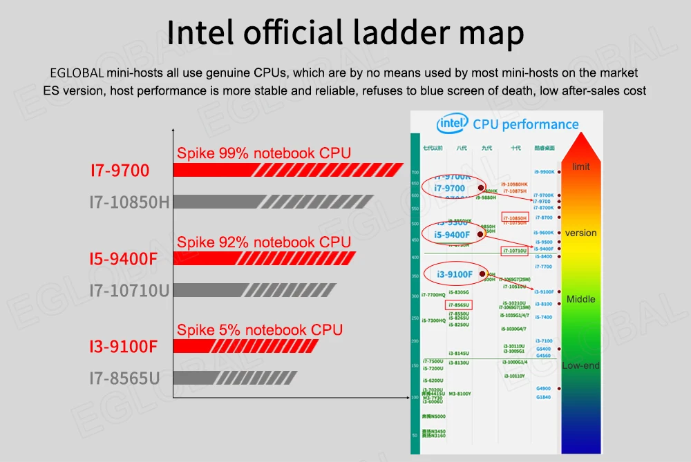 1. CPU: Comet Lake 14nm Intel Core i3-10100F 3,6 GHz hasta 4,3 GHz (tecnología Turbo boost) 4 núcleos 8 hilos 6MB de caché inteligente TDP 65W.2.CPU: Comet Lake 14nm Intel Core i5-10400F 2,9 GHz hasta 4,3 GHz (tecnología Turbo boost) 6 núcleos 12 hilos 12MB caché inteligente TDP 65W.3. CPU: Comet Lake 14nm Intel Core i7-10700F 2,9 GHz hasta 4,8 GHz (tecnología Turbo boost) 8 núcleos 16 hilos 16MB de caché inteligente TDP 65W.4. CPU: Comet Lake 14nm Intel Core i7-10900F 2,8 GHz hasta 5,2 GHz (tecnología Turbo boost) 10 núcleos 20 hilos 20MB de caché inteligente TDP 65W.