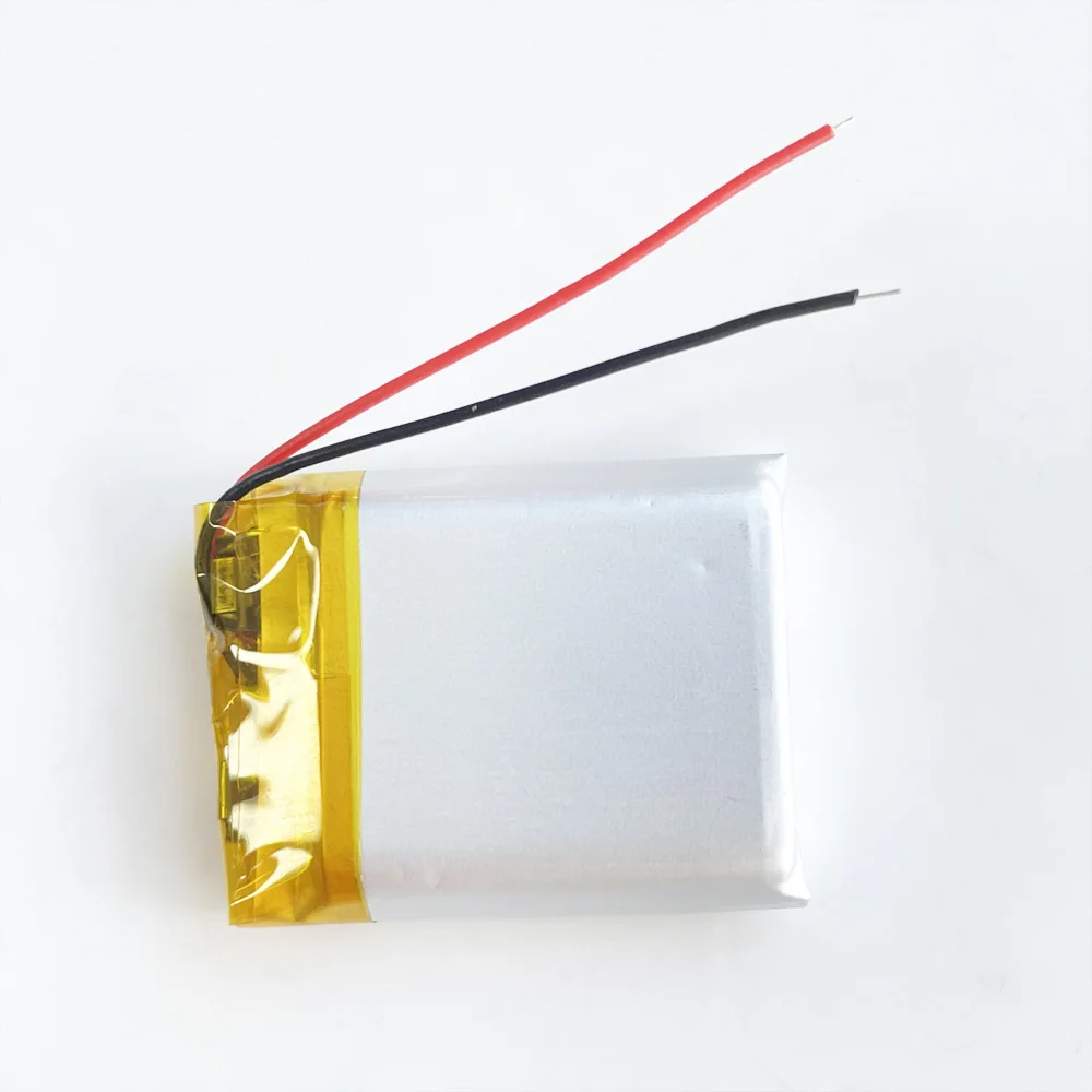 4 Tamaño: 7mm(H)* 25mm(W)* 30mm(L)5 Clasificación: DC3.7V 500mAhModelo: 702530 Tamaño: H=7mm W=25mm L=30mm Peso: 9 g/pcs Tensión: 3,7 V Capacidad: 500mAh, descarga 1C (no se puede utilizar para ningún Dron u otra aeronave). Corriente de carga: carga estándar, carga rápida: 1.0C: 0.5C Método de carga estándar: 0.5C CC (corriente constante) carga a 4,25 V, luego CV (voltaje constante 4,2 V) carga hasta que la corriente de carga sea menor o igual a 0.05C Corriente de carga máxima: 1C Corriente de descarga máxima: 1C Voltaje de corte de descarga: 2,75 V Temperatura de descarga: -20 grados C ~ + 60 Grados C Tiempo de carga: 2-4 horas (estándar); 2 horas (rápido) Función de protección: sobre carga, sobre descarga, sobre corriente, protección contra cortocircuitos, protección contra sobretemperatura Se puede recargar repetidamente Circuito de protección incorporado PCM para evitar la sobrecarga o sobredescarga. ¡No se puede usar para ningún Dron u otra aeronave!