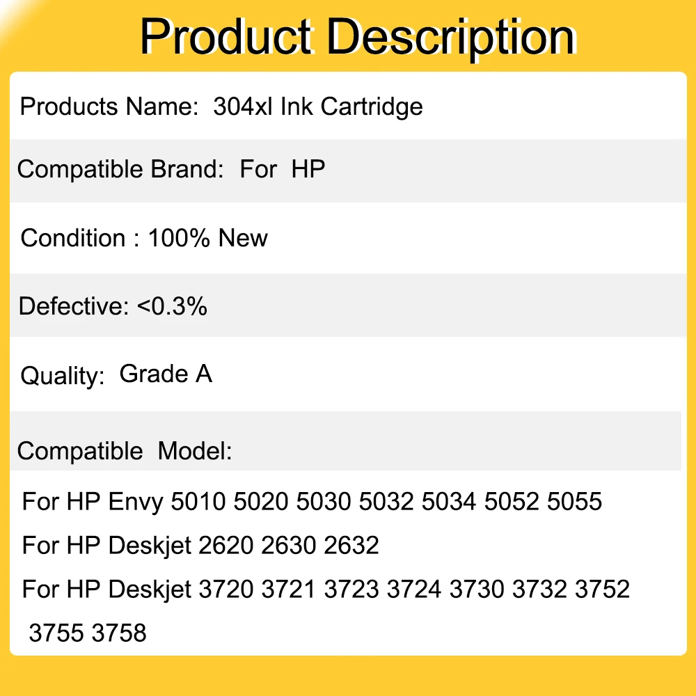 Comprar Einkshop Cartucho de recarga de tinta para HP 304XL HP 304 para hp 304 xl Envy 5010 5020 5030 5032 5034 5052 5055 para HP Deskjet 2620 2630
