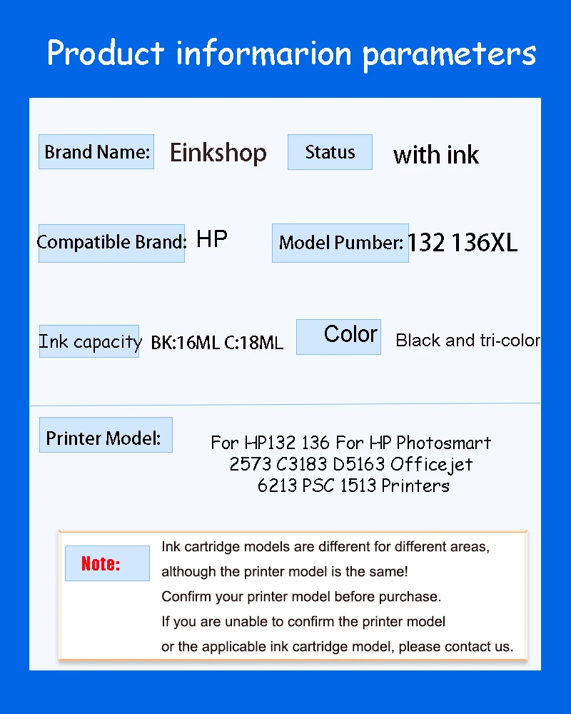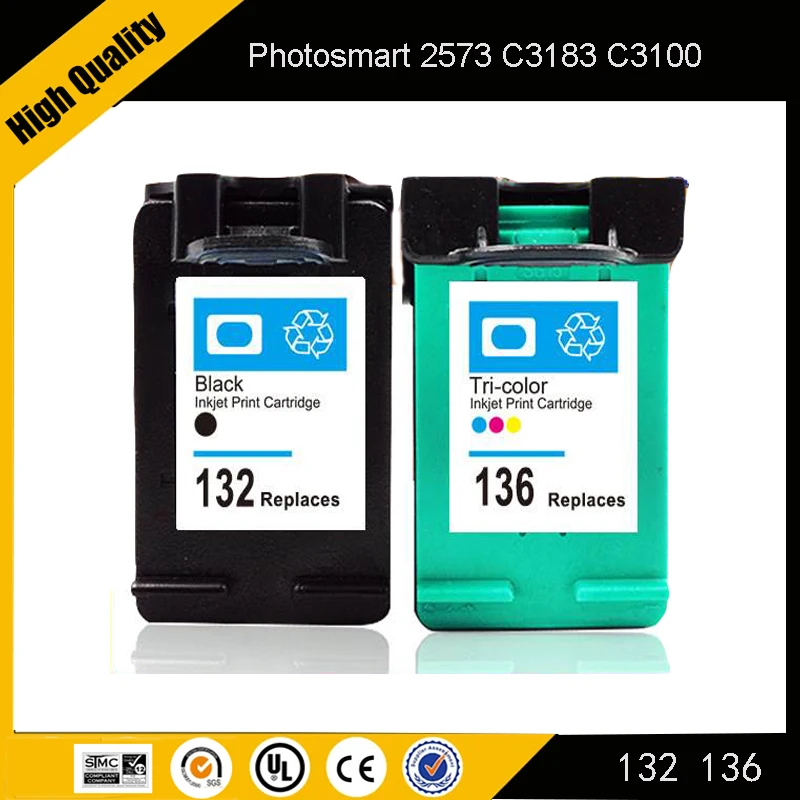 Einkshop para HP 132 136 cartucho de tinta Compatible para HP Photosmart 2573 C3183 C3100 Officejet 6213 PSC 1513 para Cartucho HP 132