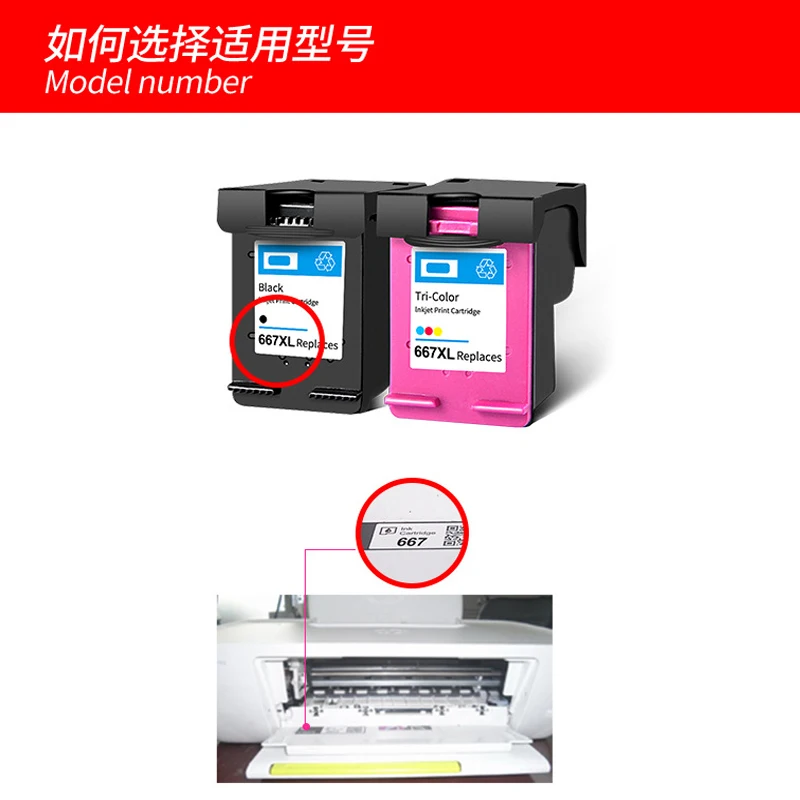 Para cartucho de tinta HP 667XL 667 XL para impresora HP667 DeskJet Ink Advantage 1275 2374 2375 2376 2775 2776