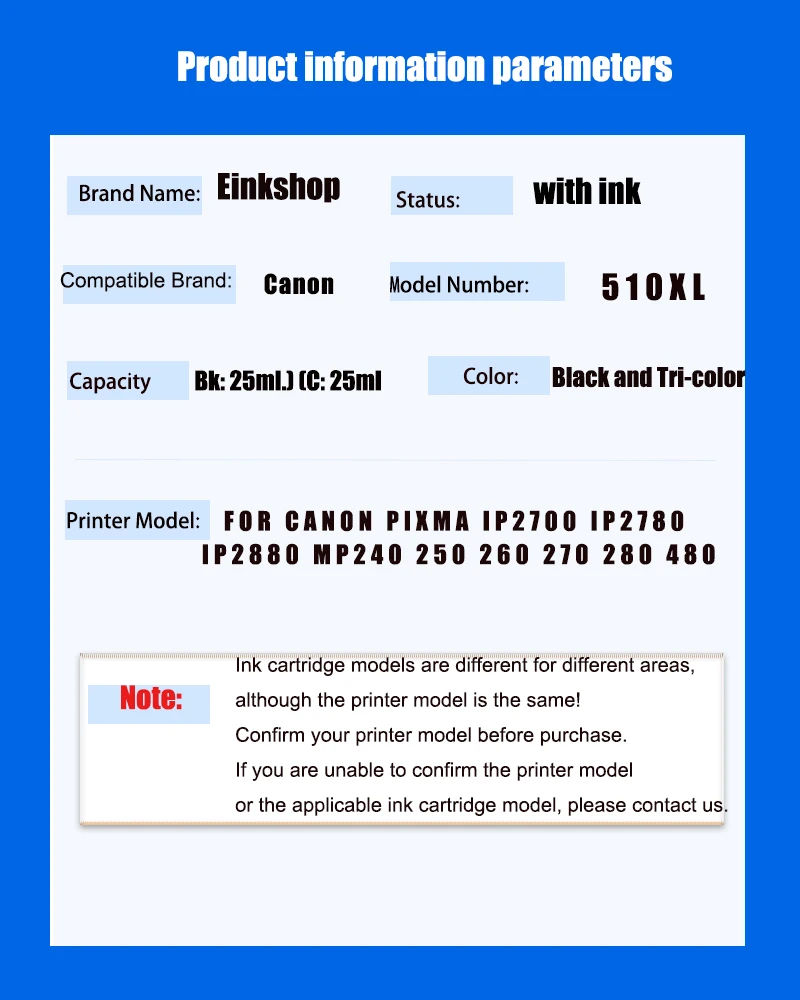 Einkshop PG510 CL511 Cartucho de Tinta para Canon PIXMA, IP2700, IP2780, IP2880, MP240, 250, 260, 270, 280, 480