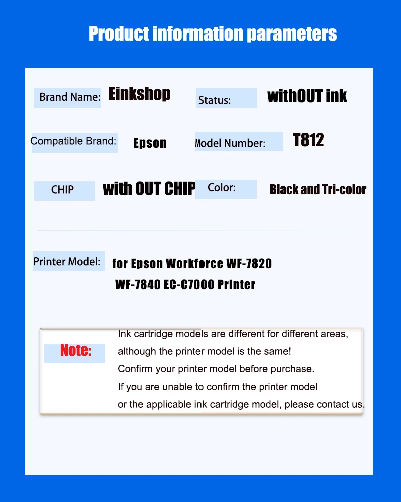 Comprar Einkshop-cartucho de tinta recargable T812 812XL 812, sin Chip, para impresora Epson WF-3820, WF-4820, WF-4825, WF-7820, WF-7840