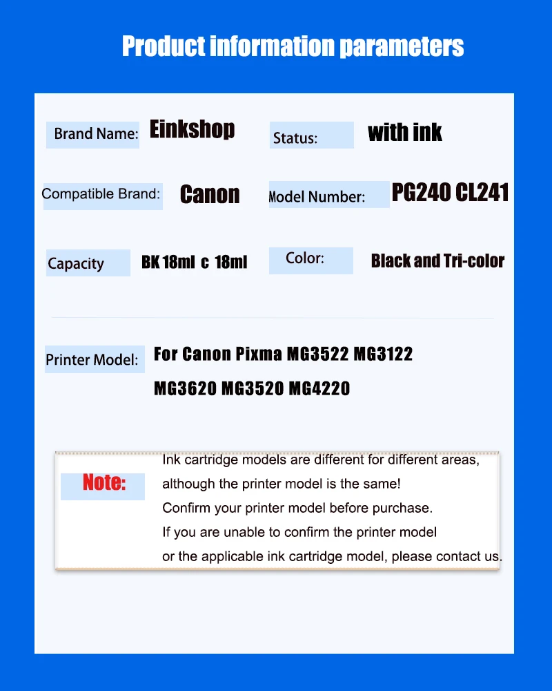 Nota 2:Confirme si su modelo de cartucho de tinta original es consistente con ese modelo.Si es diferente, no realice un pedido,
