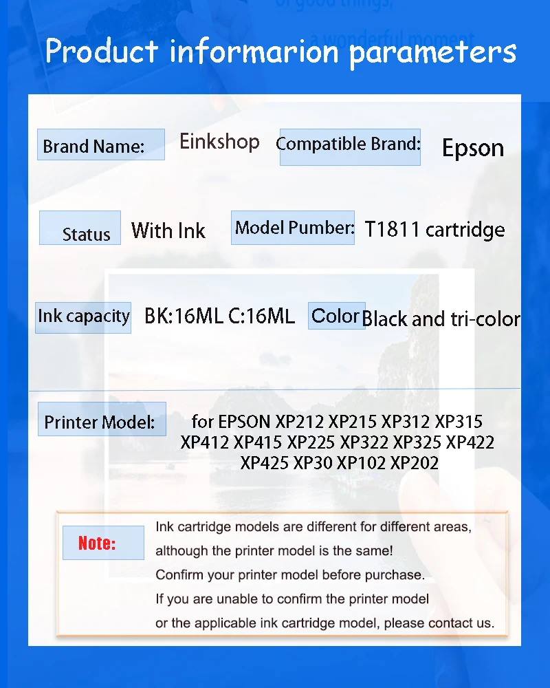 Comprar Einkshop T1811-T1814 Cartucho de tinta para Epson Expression Home XP-215 XP-312 XP-315 XP-415 XP-225 XP-322 XP-325 XP-422