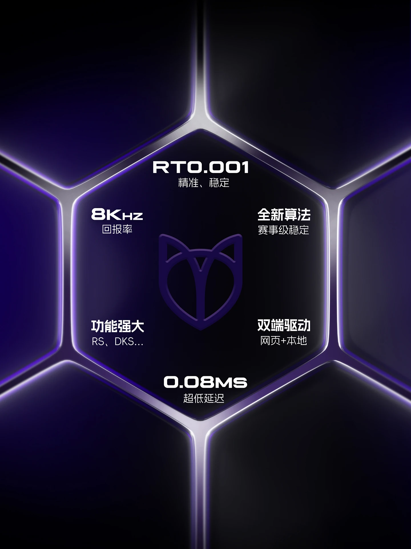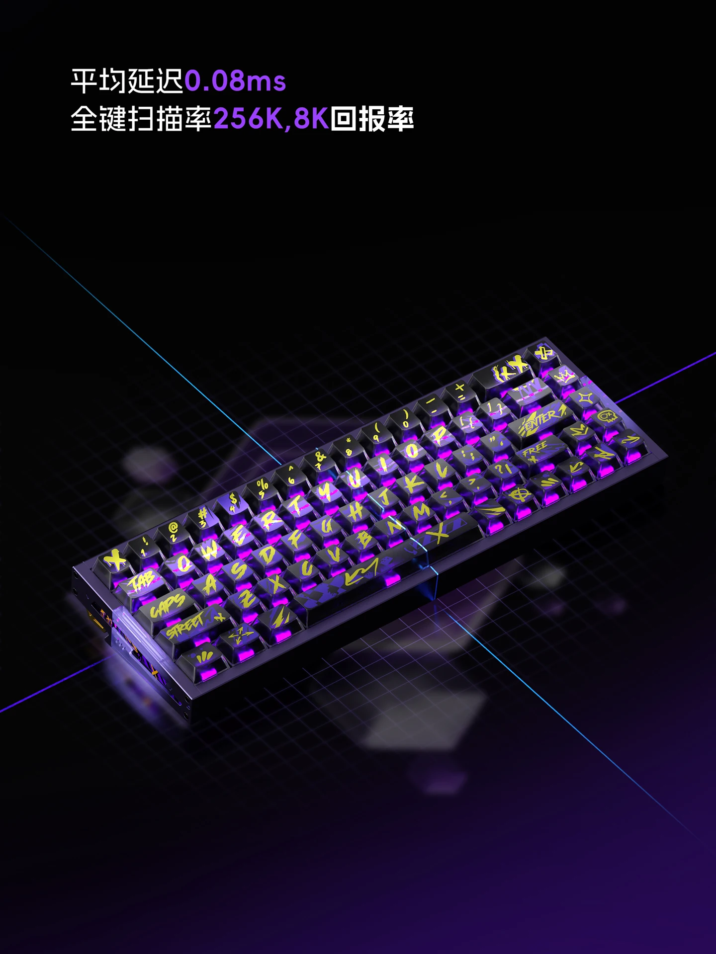 Extremely low input latency (average 0.08ms), high 256K key scan rate, and 8K report rate for instant, responsive gameplay.