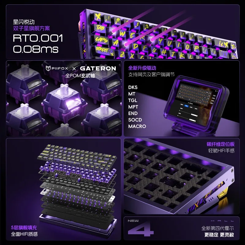 Extremely low input latency (average 0.08ms), high 256K key scan rate, and 8K report rate for instant, responsive gameplay.