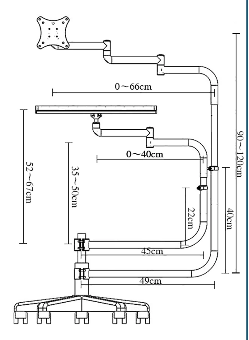 Inclinación del teclado: -85 ° ~ + 20 °; Giro: -45 ° ~ + 45 °; Rotación: 360 °