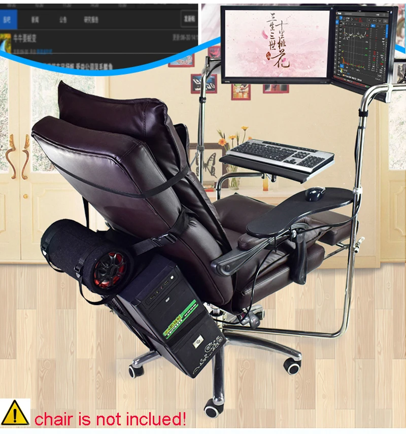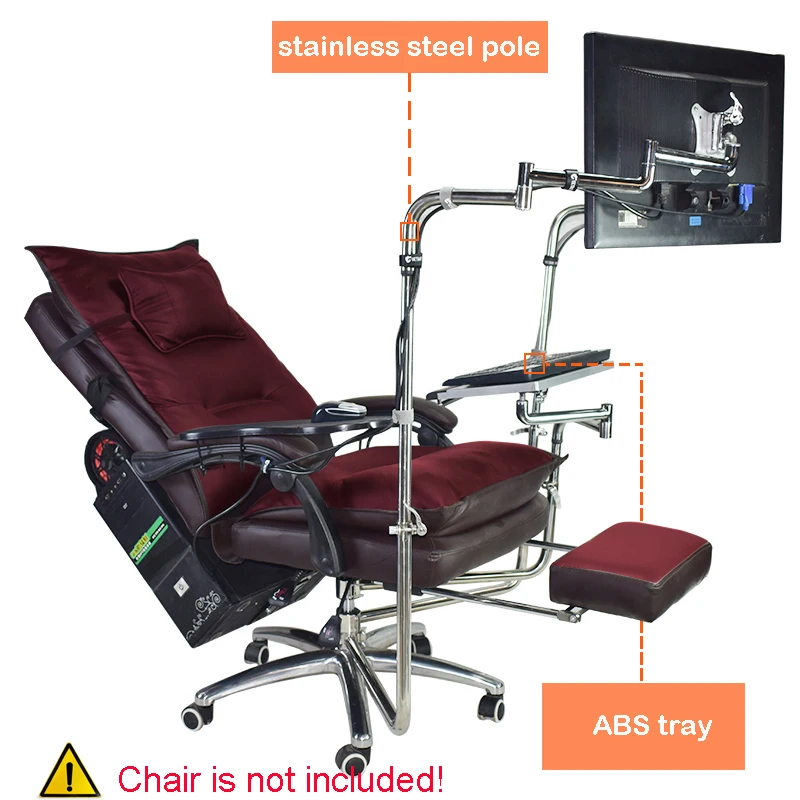 Paquetes: >>>1 soporte para teclado/portátil2 * soportes de monitor1 * alfombrilla de ratón con sujeción para brazo de Silla con alfombrilla de ratón1 * soporte de CPU3 * tubos inoxidablesHerramientas hardware¡Este producto es para usar con la mano derecha!Nota: ¡la silla no está incluida!Se puede utilizar en su propia silla de eje.