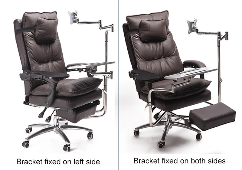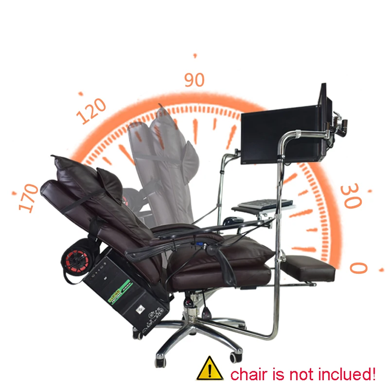 Paquetes:1 soporte para teclado/portátil2 * soporte para monitor1 * alfombrilla de ratón con sujeción para brazo de Silla con alfombrilla de ratón1 * soporte de CPU3 * tubos inoxidablesHerramientas hardware¡Este producto es para usar con la mano derecha!¡La silla no está incluida en este producto! Se puede utilizar en su propia silla de eje.