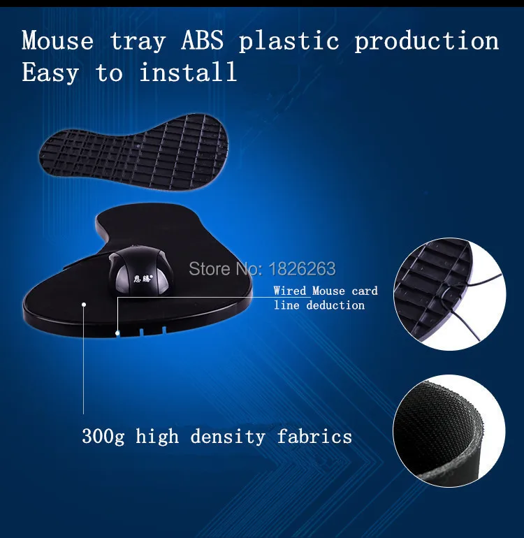 Alfombrilla de ratón con sujeción para brazo de Silla (con alfombrilla de ratón) Tamaño: 480mm (longitud), 230mm (ancho),12mm (grosor)