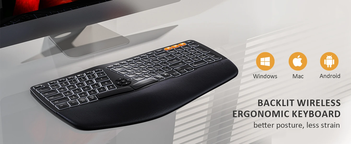 Comprar EK01 teclado inalámbrico recargable por Bluetooth, ergonómico, retroiluminado, Ergo, teclados divididos con reposamuñecas
