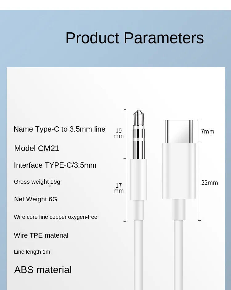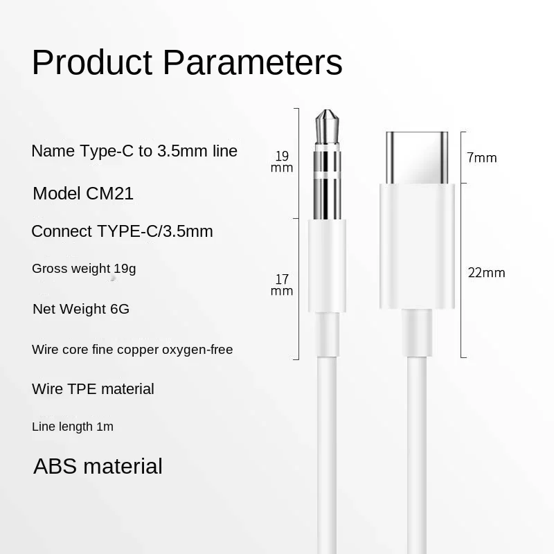 El audio digital AUX para coche tipo C a 3,5mm es adecuado para los altavoces de coche con cable Huawei P20 para escuchar música, larga vida útilCompatible con el teléfono móvil con interfaz tipo C del mercado, compatible con salida de audio (con interfaz de 3,5mm no es compatible)