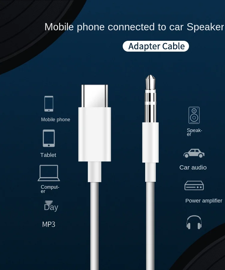 Comprar El Audio Digital auxiliar tipo C a 3,5mm para coche es adecuado para altavoces de coche con Cable Huawei P20, para escuchar música, larga vida útil