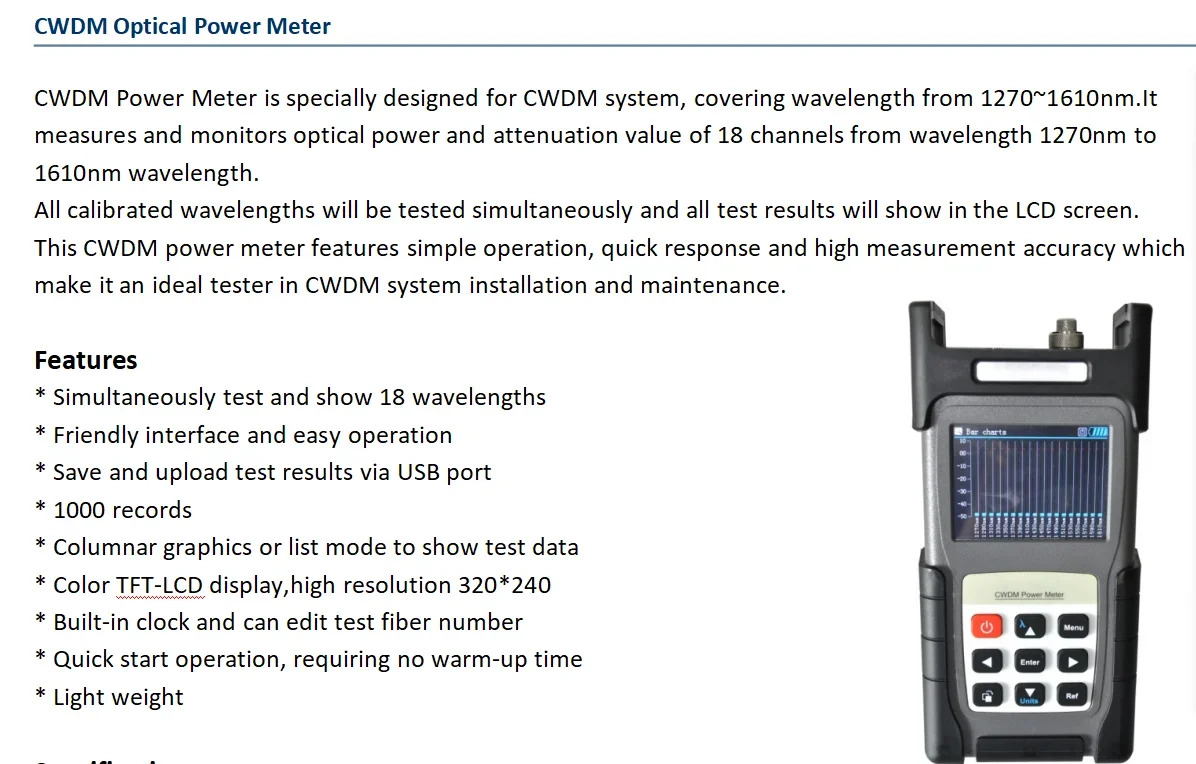 Qingdao Applied Photonic Technical Co.Ltd (APT para abreviar) es una empresa conjunta de alta tecnología especializada en el desarrollo, fabricación y comercialización de componentes ópticos pasivos y equipos de transmisión fotoeléctrica y CATV que están en fase con tecnología avanzada internacional.Con sede en la zona comercial libre de Qingdao, APT dirige sus oficinas en América del Norte, India, Qatar, Australia y Beijing, Guangzhou Shenyang, Shanxi, Nanchang, Guiyang de China.Con 20 millones de RMB de capital registrado y una superficie de 20.000 metros cuadrados, APT cuenta con una sala limpia avanzada de clase 100 000 metros cuadrados.Todos los equipos de producción e instrumentos de inspección son de EE. UU., Japón, Canadá y Taiwán.Al asimilar el modo, las técnicas y las instalaciones de fabricación e inspección de gestión avanzada internacional, reunir un grupo de talentos experimentados en comunicaciones ópticas globales, tecnología fotoeléctrica y CATV, APT ofrece productos competitivos para la industria respaldados por tecnología globalizada.Nuestro objetivo es ofrecer a nuestros clientes dentro y en el extranjero productos de alta calidad y servicios perfectos.Cooperamos y seremos los socios estratégicos más confiables, y cooperamos para convertirnos en el fabricante líder en la industria global de las comunicaciones ópticas. Preguntas frecuentes 1. ¿Quiénes somos?Comprar El equipo de fibra óptica Qingdao APT admite medidor de potencia óptica CWDM de detección de 18 longitudes de onda con USB 3226A para pruebas en el sitio