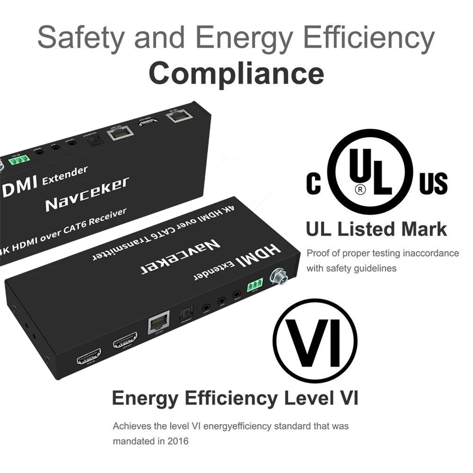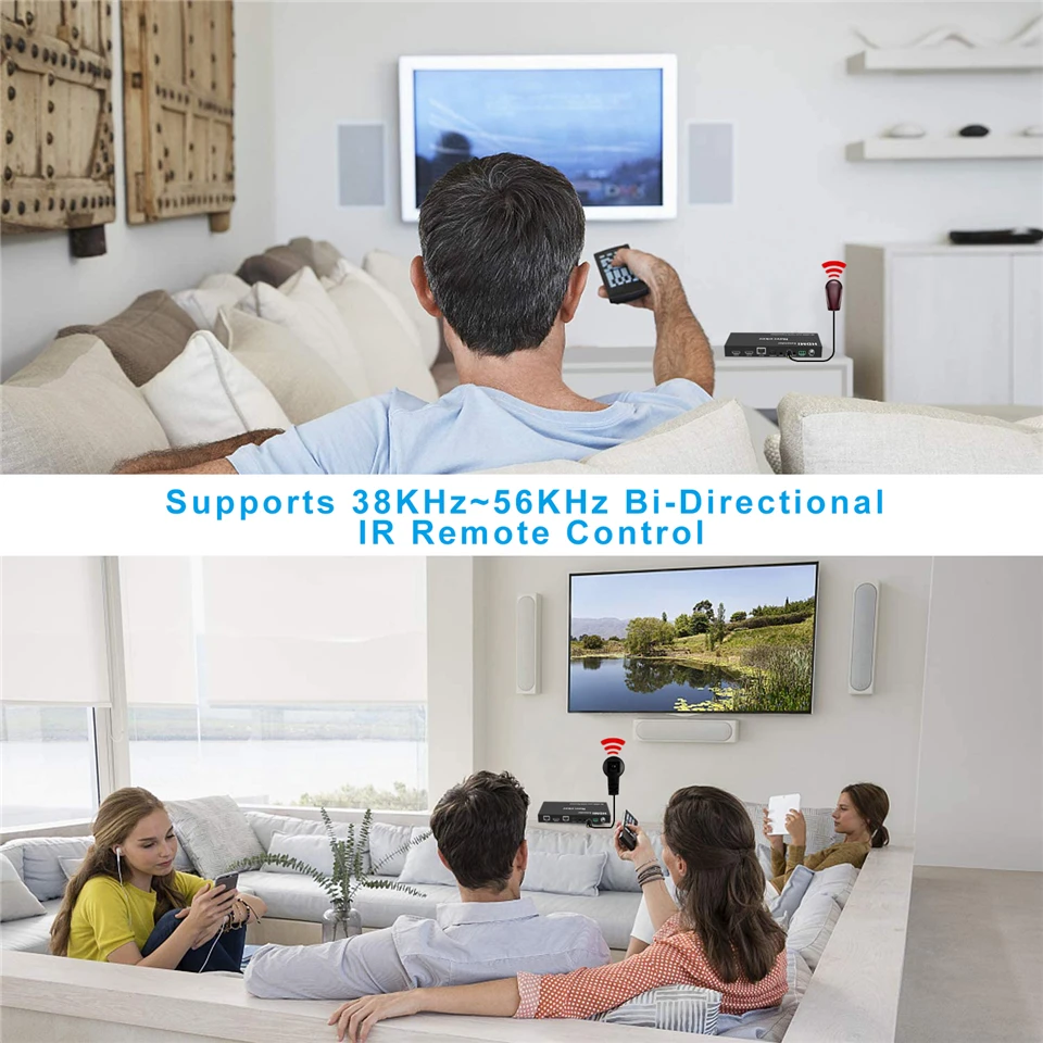 El extensor HDMI Navceker de 18Gbps puede extender la señal de video / audio de alta definición, el Toslink óptico, el conector de 3,5mm y el IR bidireccional, por el momento, por el momento. Y la distancia es de hasta 400 pies/120 metros entre el transmisor y el receptor a través de un solo cable CAT6.