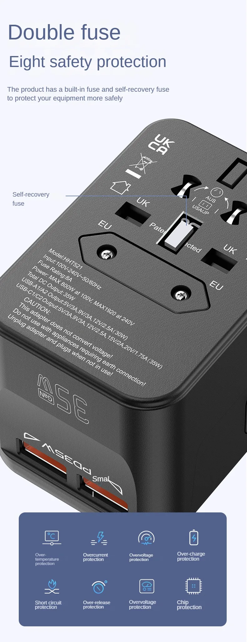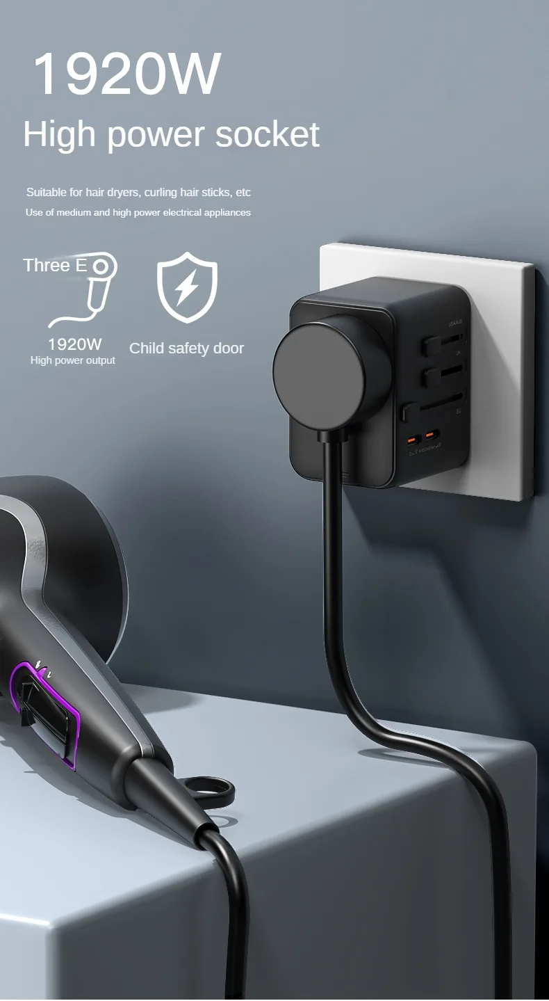 Comprar El nuevo enchufe adaptador universal GAN de 35 W es un convertidor de enchufe de viaje multifuncional que se puede utilizar en múltiples formas
