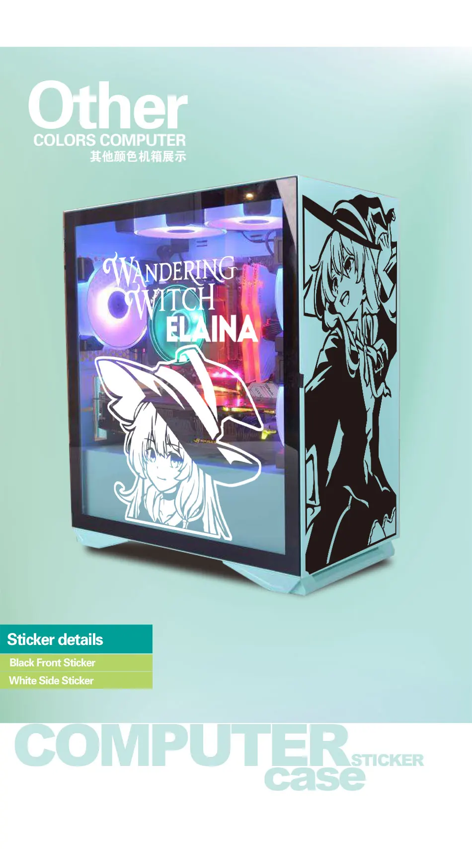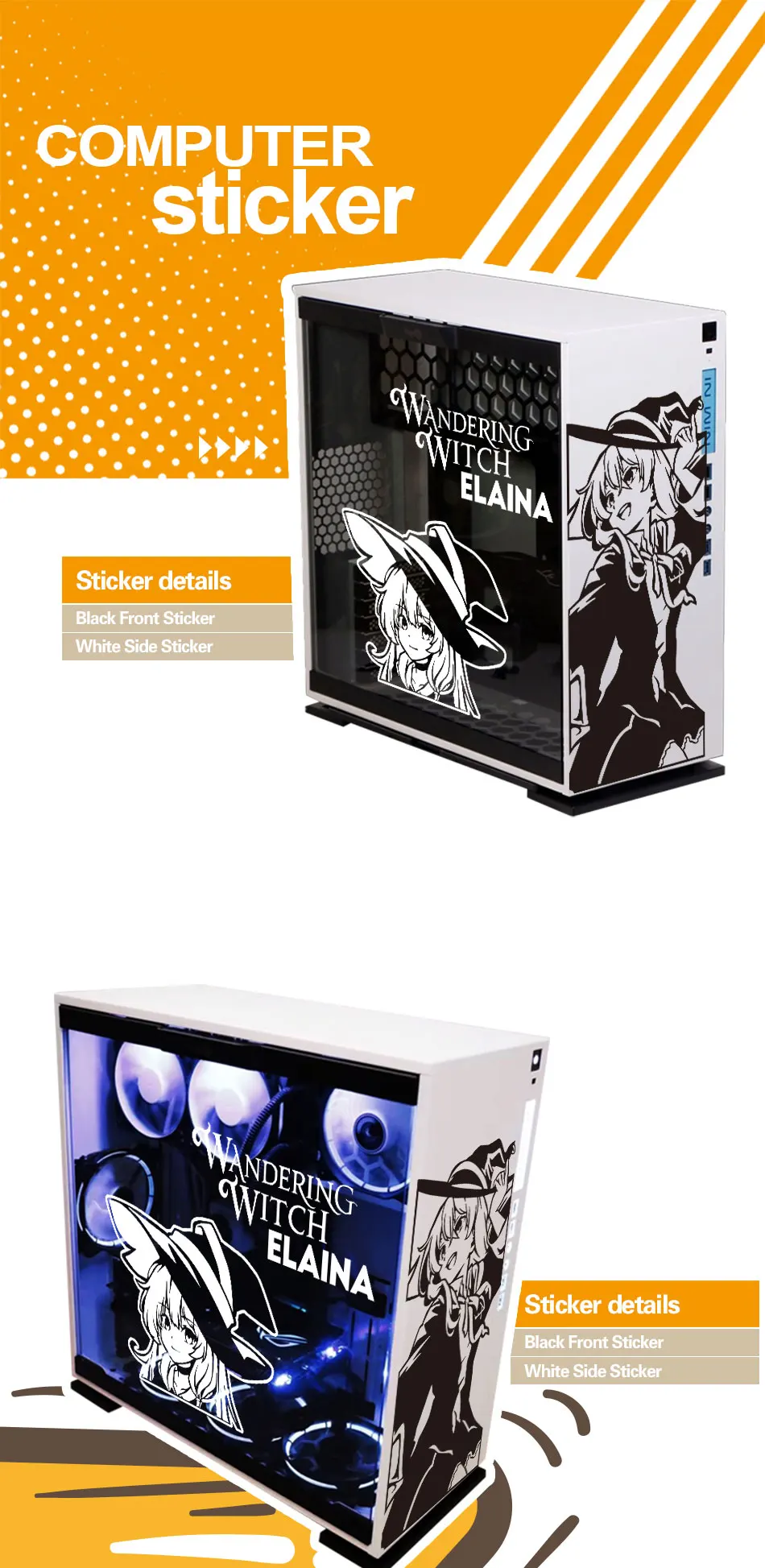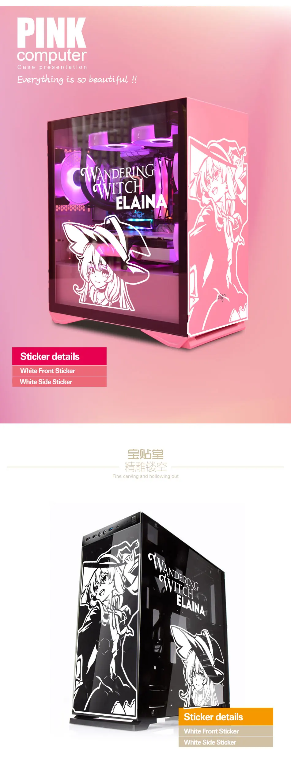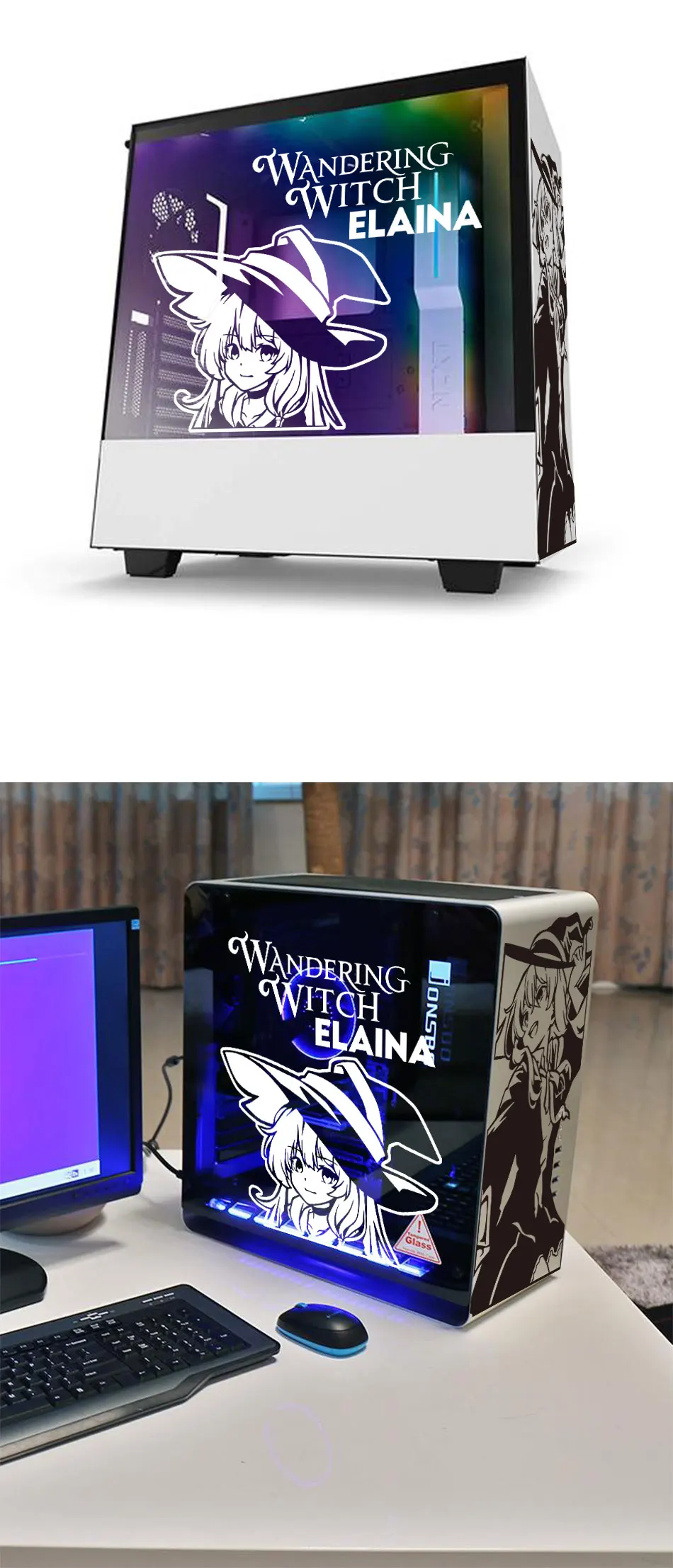 Comprar Elaina pegatinas de Anime para funda de PC, calcomanías de decoración de dibujos animados japoneses para piel de chasis de computadora Atx, pegatina impermeable hueca